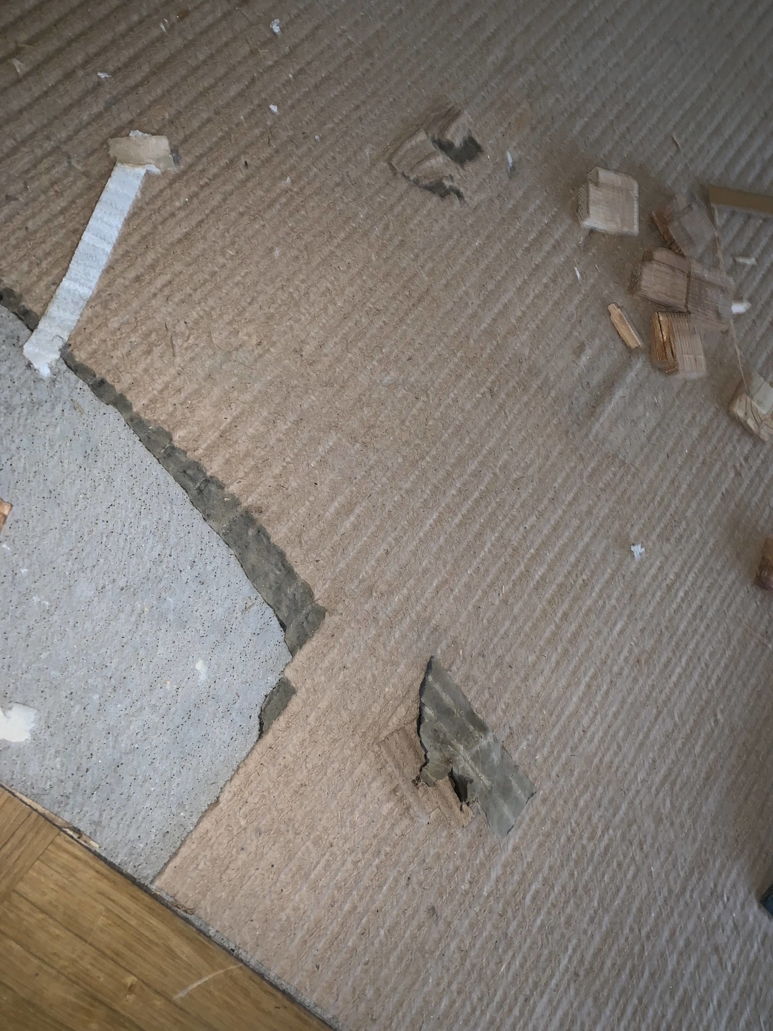Kan detta vara asbest? Plastmatta och mörkt lim