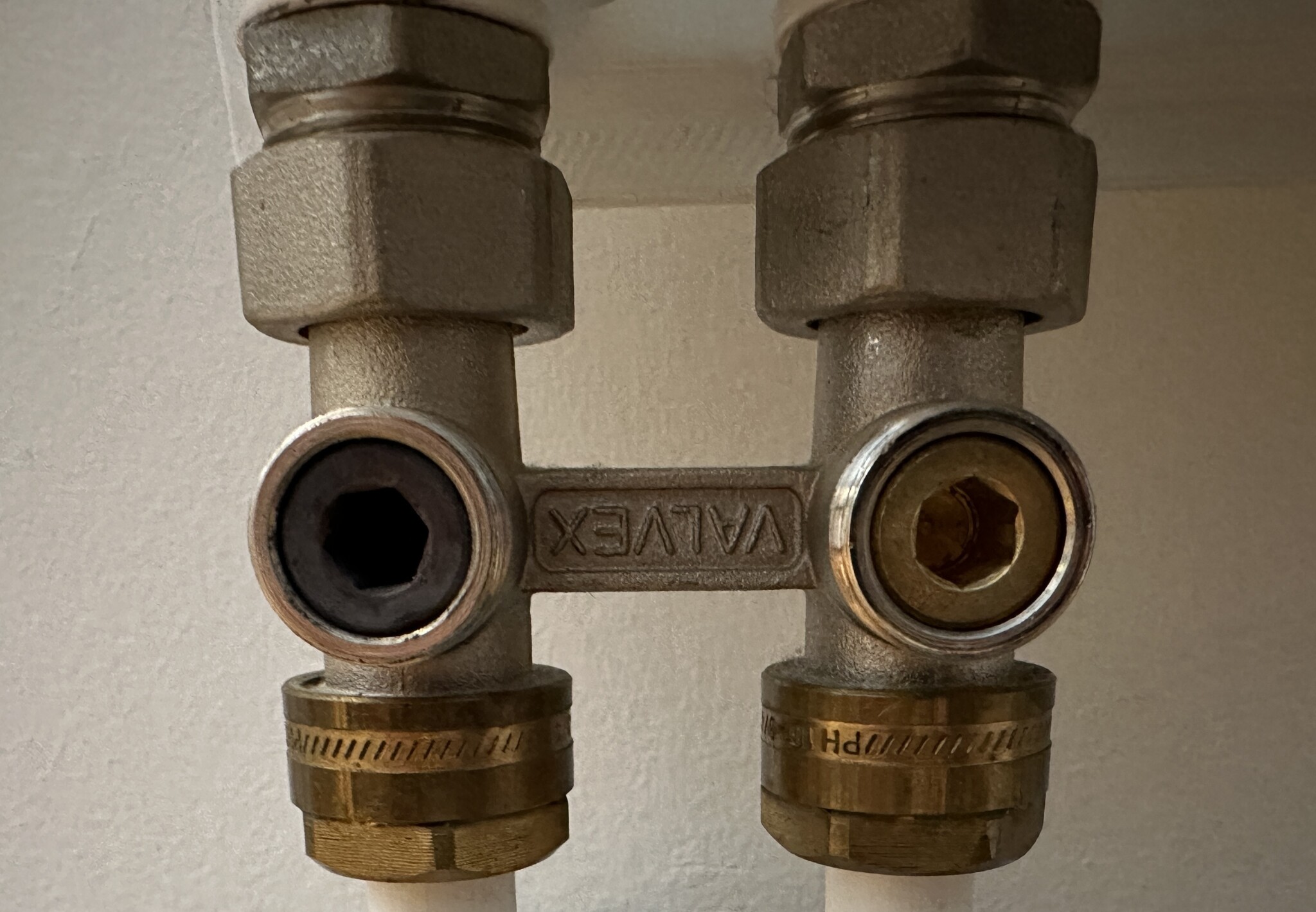 ) kanske inte var helt öppna. Jämförde med en annan radiator på dess avstängningsventiler nu och det ser likadant ut. Antar att man borde se ganska tydligt om det skiljer sig betydande. Sen är det ju bra att veta att det borde gå att isolera bort denna radiator om jag behöver byta radiatorventil. Så slipper man stänga av resten av huset. Extra bra vintertid tänker jag. Sen om de fungerar som tänkt vet man väl aldrig.