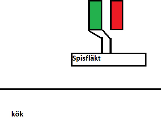 Min andra fråga är: trots att vi saknar denna kryddhyllefläkt så har vi drag i badrumsventilen (om än lite, den klarar att hålla fast ett toalettpapperark i typ 5 sek), hur kan detta komma sig? Badrum och kök ligger vägg i vägg, tittar man upp i ventilen i badrummet ser det ut att vara en T-koppling. Dvs det kommer ett rör från kökshållet och sen fortsätter det vidare rakt fram.