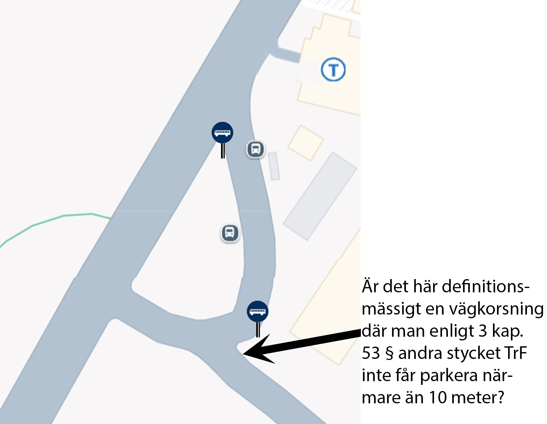 Jag börjar tro att det hela kokar ner till frågan om huruvida ”bussvägen” med de två hållplatserna är en ”KÖRBANA” eller om det är en ”UTFART” och vad som då gäller.