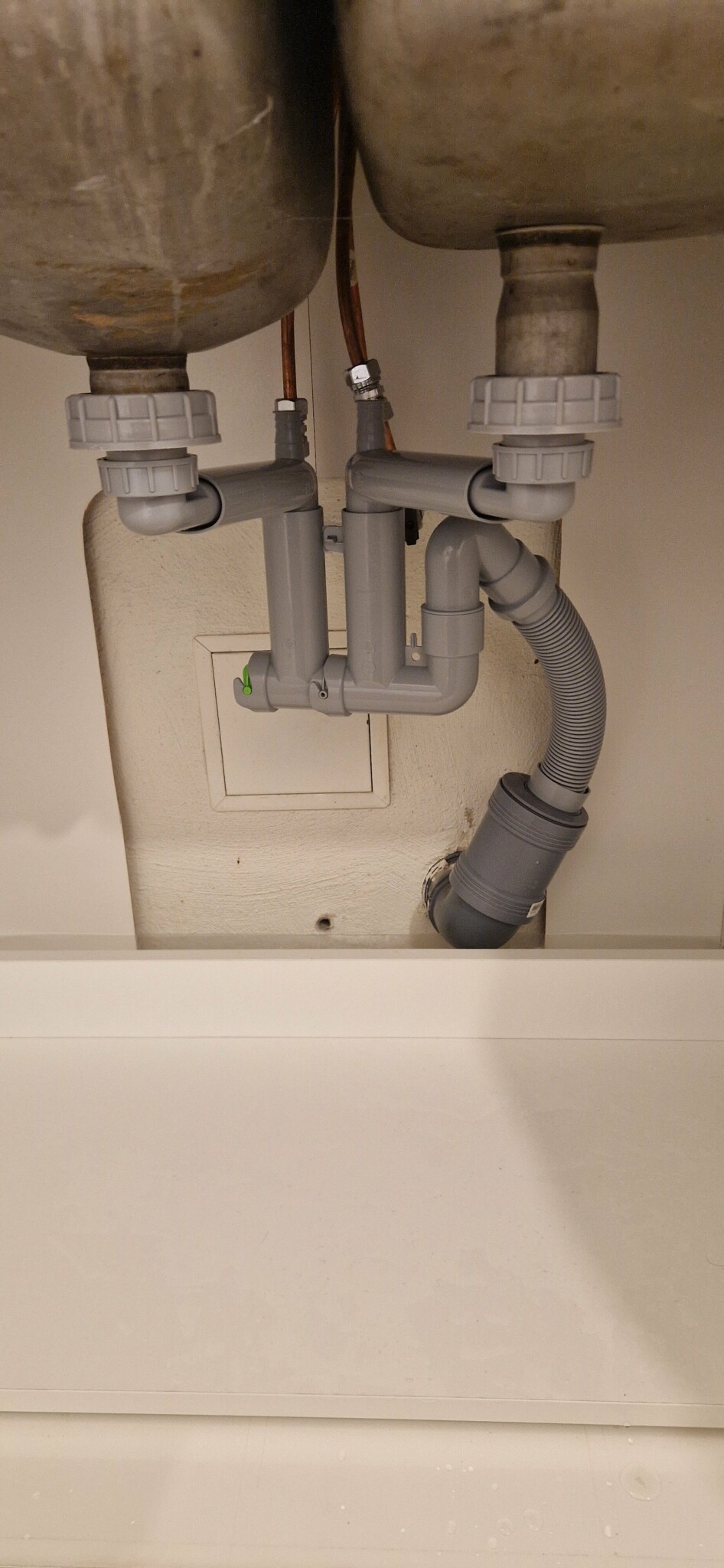 Den är således inte ideal. Men den går ju ändå lätt att rensa om det vill sig illa eftersom den sitter demonterbart och åtkomligt där under diskbänken.