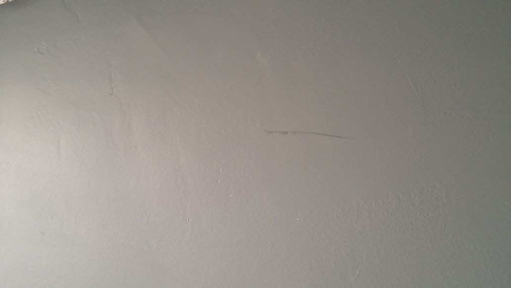Ser ni bilden? Man ser att resultatet av bredspacklingen/målningen är ojämn i strukturen vilket syns tygligt i vissa ljusriktningar.