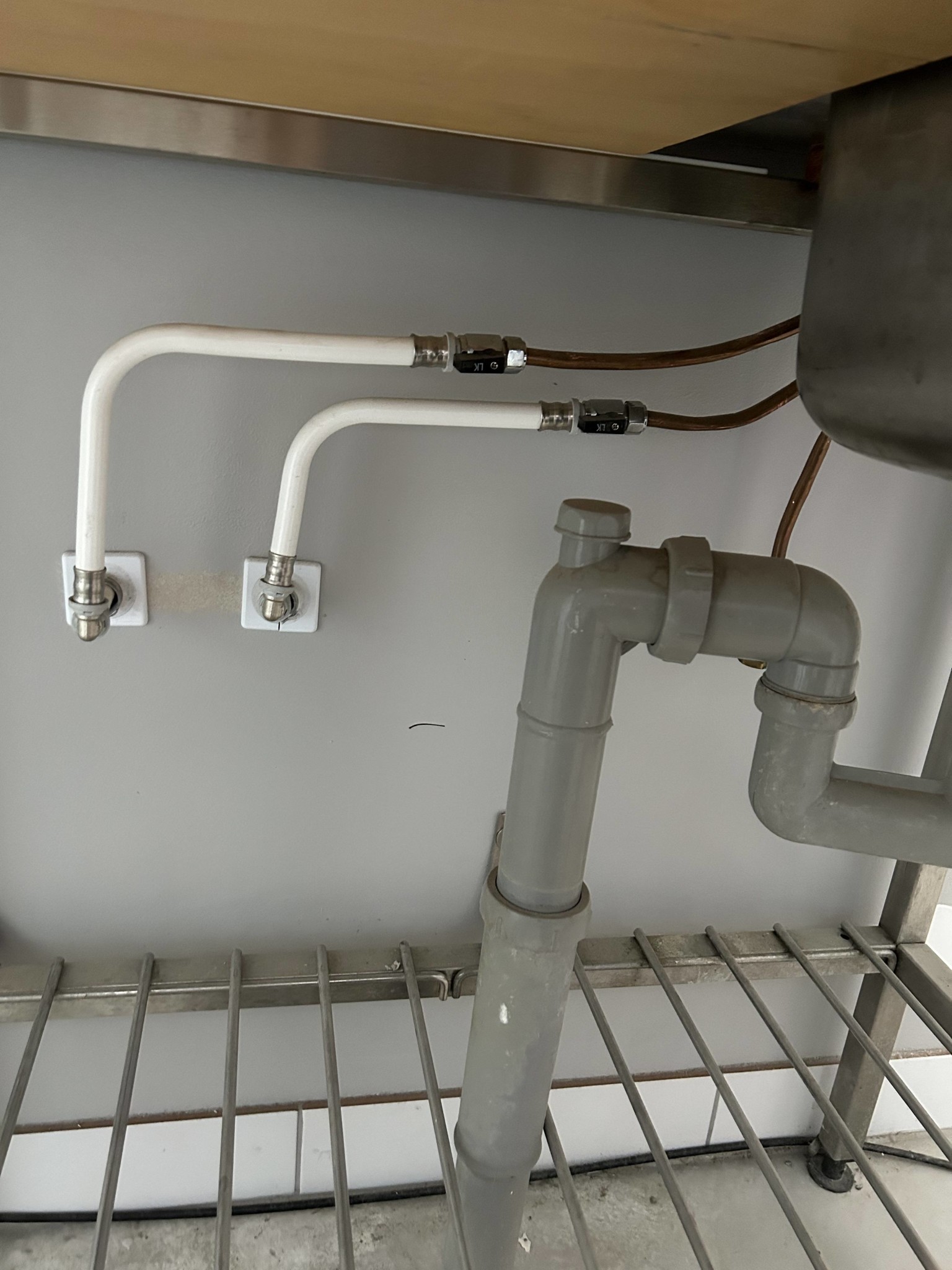 1. Stäng av vattnet på huvudkranen, inte på ballofixerna i diskbänken.