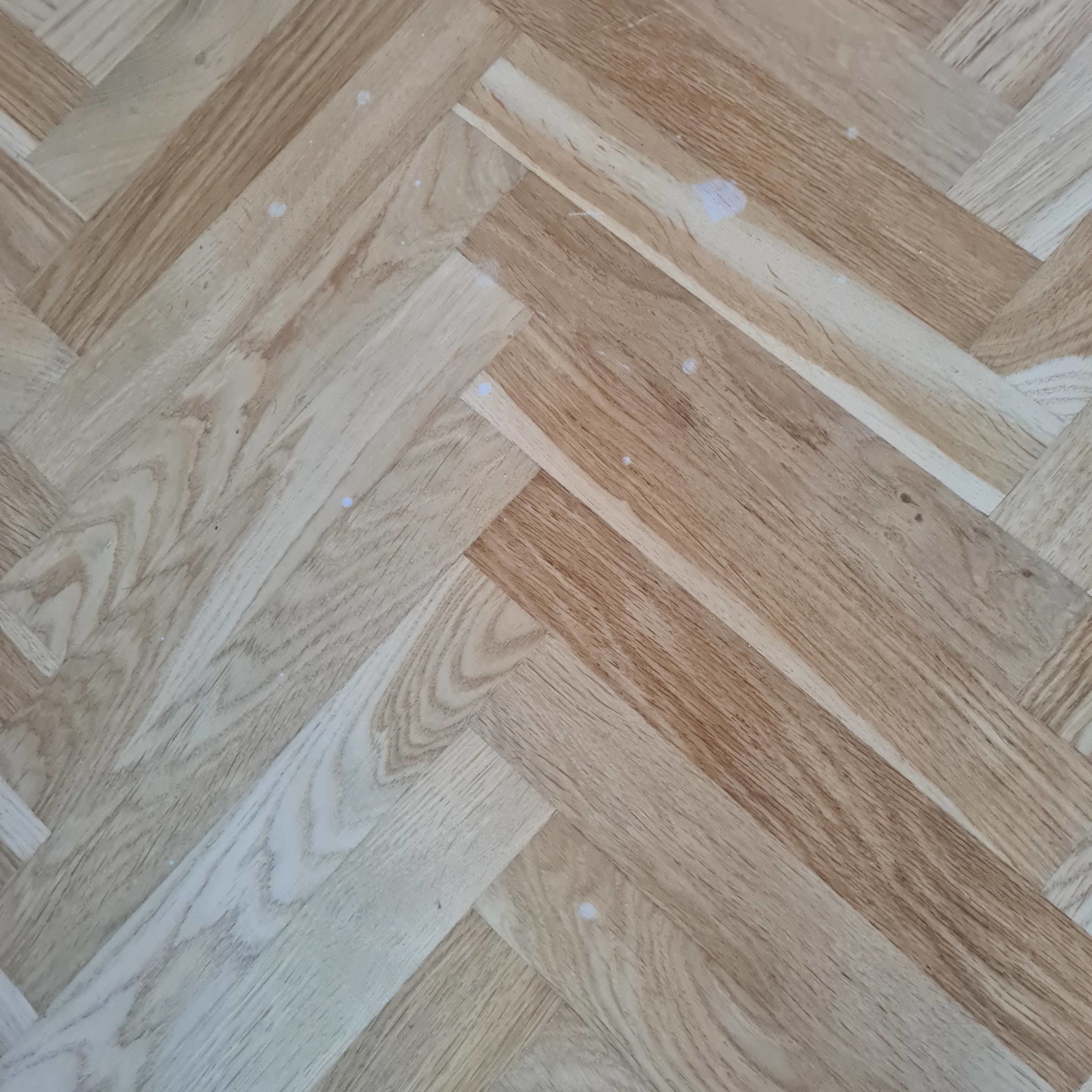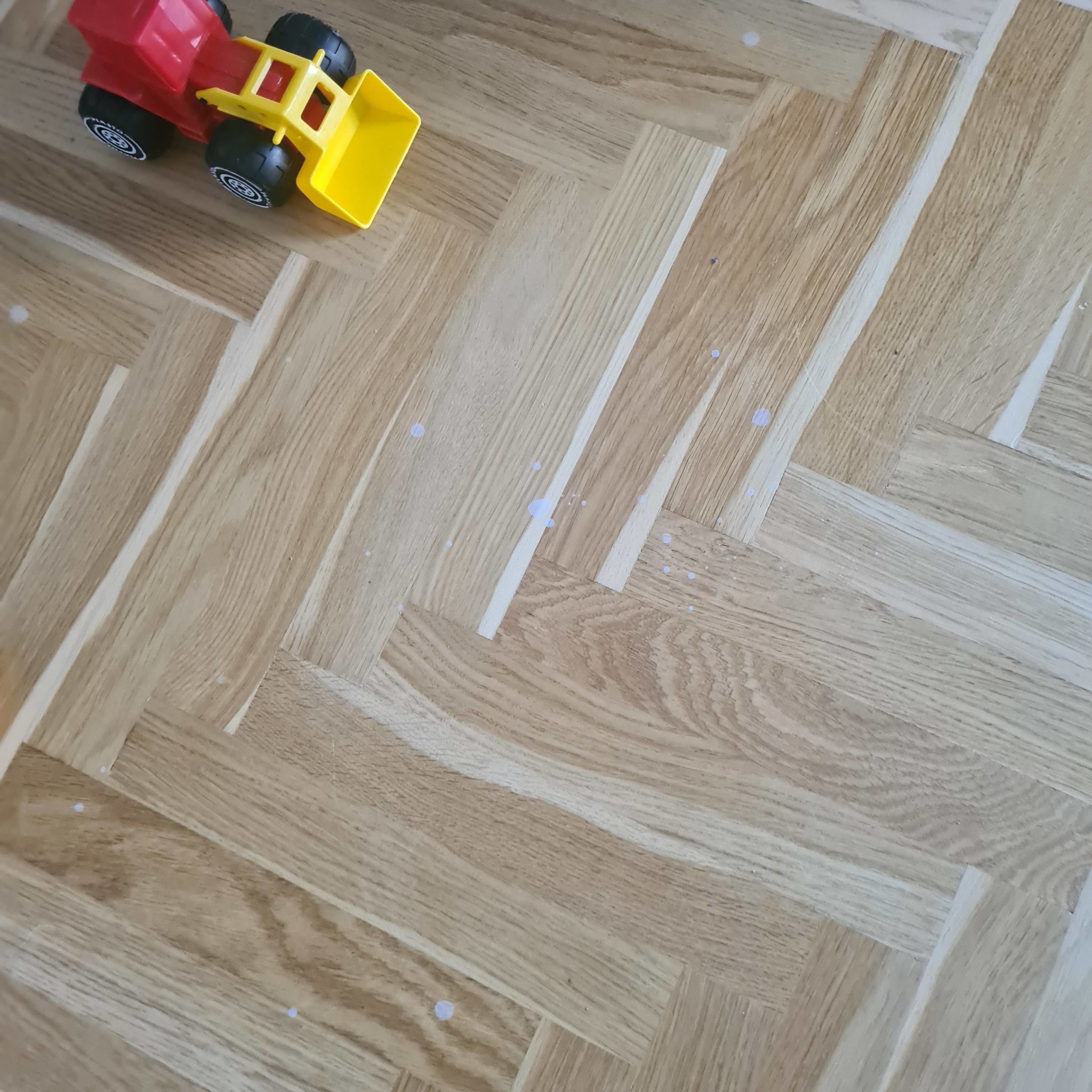 Kan vara fuktskador i lacken, som uppstått när någon har råkat skvätta vatten på golvet och inte har torkat upp det direkt. Fläckarna består då av hårfina krackeleringar i lacken. När du blöter en fläck för att ”tvätta bort” den fylls sprickorna med vatten och blir osynliga. Efter några minuter torkar det och sprickorna blir synliga igen.