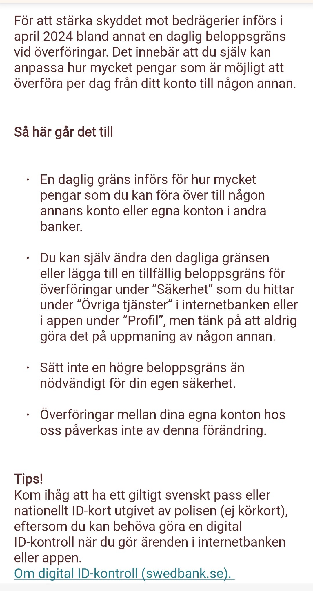 Man kan bara ändra gränsen temporärt enligt vår lokala sparbank.P Pyka skrev:Antar att du menar Swedbank.