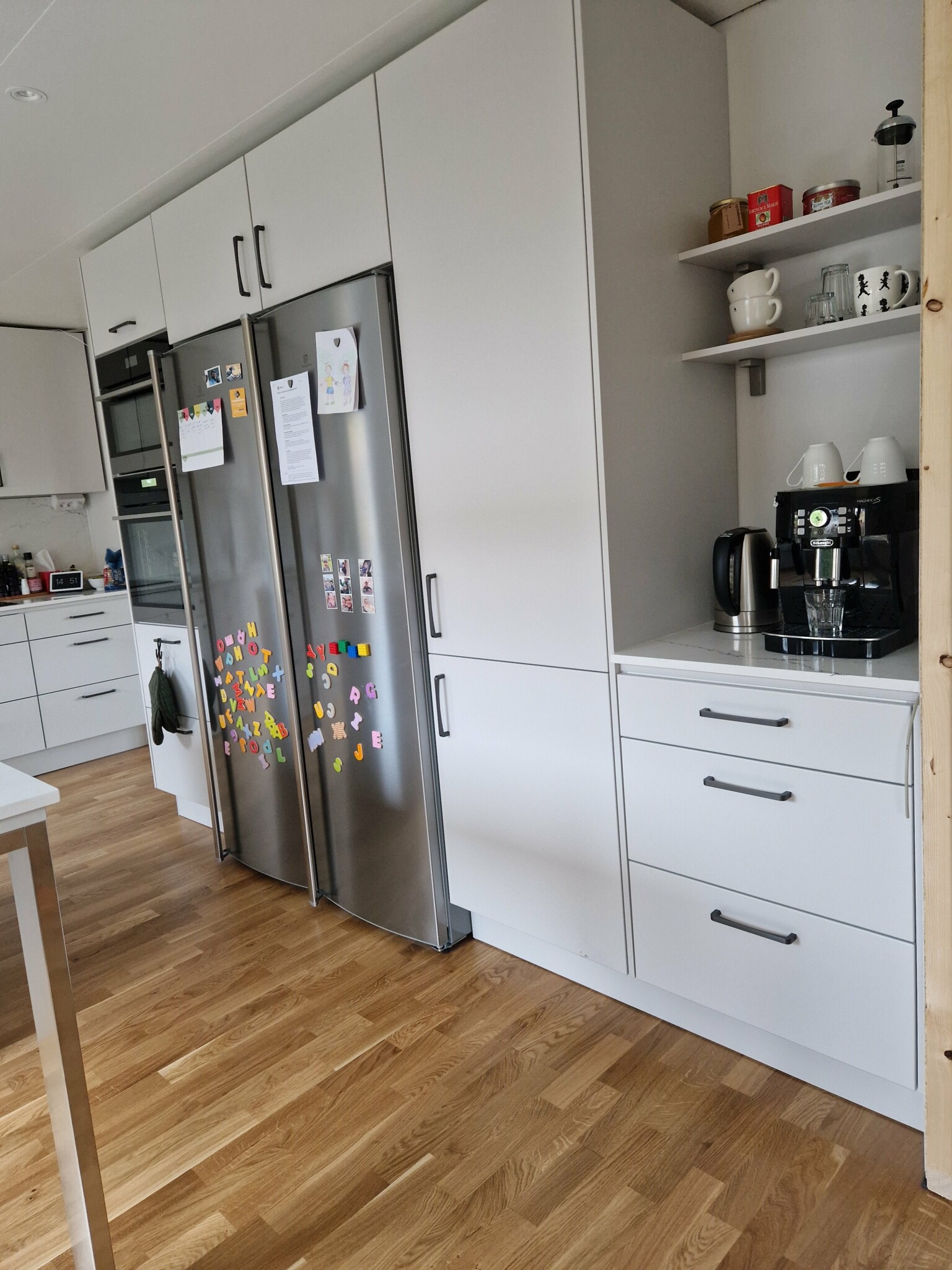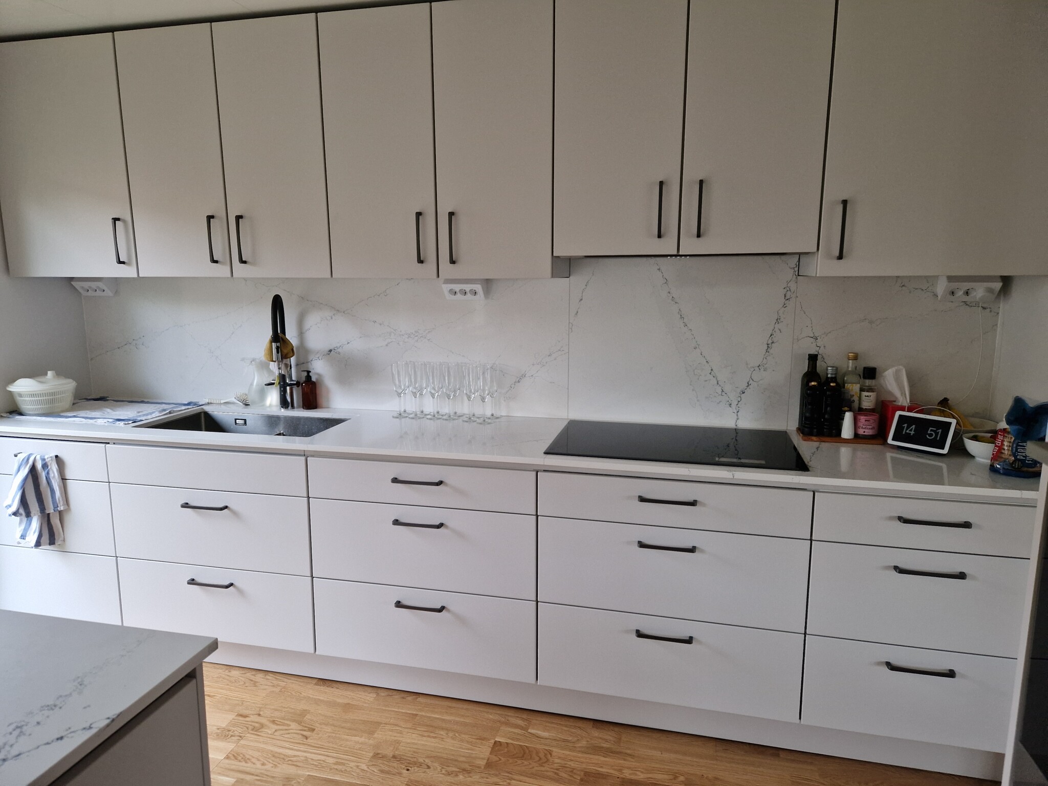 Själva planeringen kunde ha varit bättre, allt gick fort att få, men fick väldigt lite input och förslag på det vi önskade och hade som förutsättningar. En erfaren köksplanerare hade nog fångat upp en del saker som vi inte tänkte på, typ höjd på kombiugn/micron som nu är i högsta laget sett till att luckan öppnas nedåt som på en ugn.