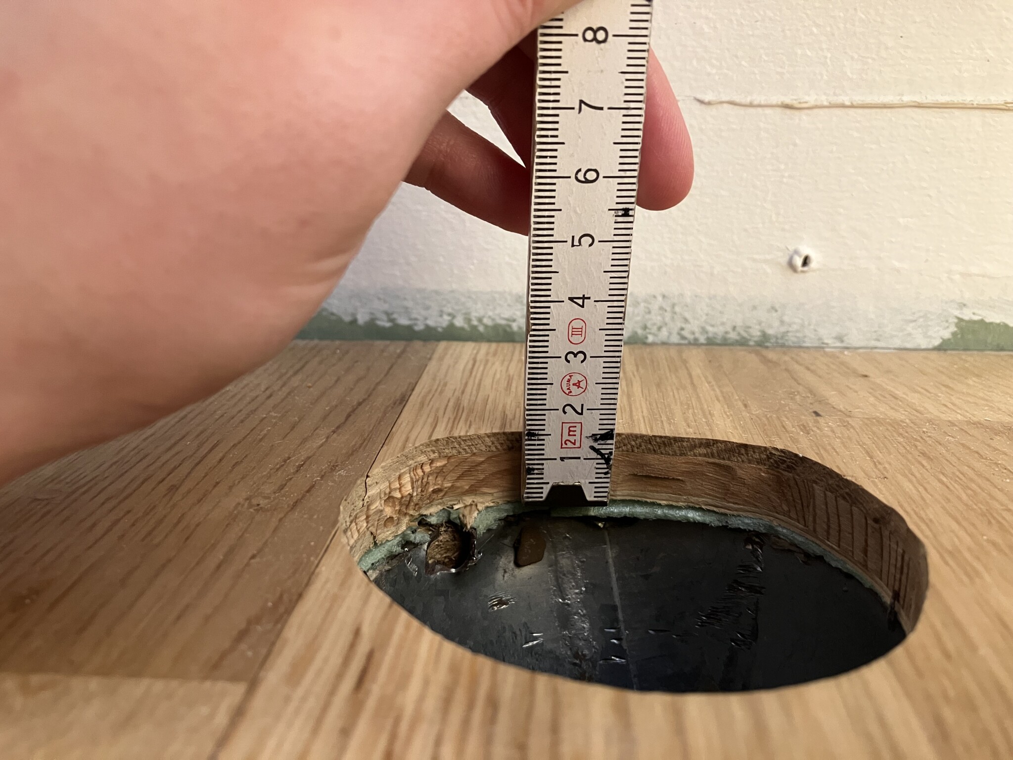 Det är ju ett tjockt trälager men det verkar vara två trälager (se bild på genomskärning nedan)? Vad tycker ni, är risken för stor att man kommer ner till det undre lagret eller inte? Golvet är från 1982 om det spelar någon roll och den främsta avsikten är att ta bort lacken för att lacka om.