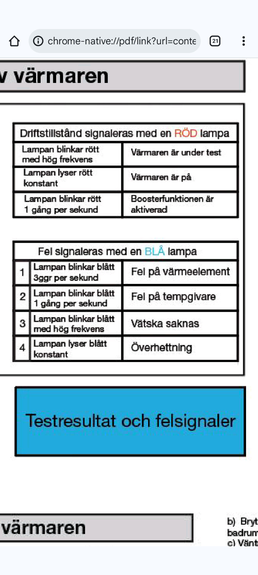 Ingen förändring efter detta, torken blinkar blått en gång i sekunden vilket ju enligt nedan indikerar att det är fel på tempgivaren.