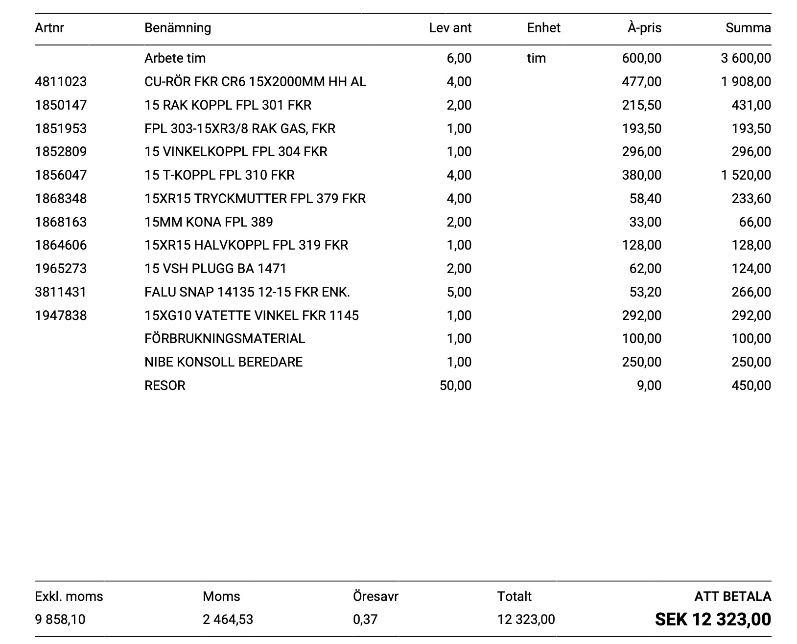 Jag är mest nyfiken på kostnad för material som är specificerat på faktura. Det mesta jag hittar vid snabba sökningar kostar hälften av vad som står på faktura.