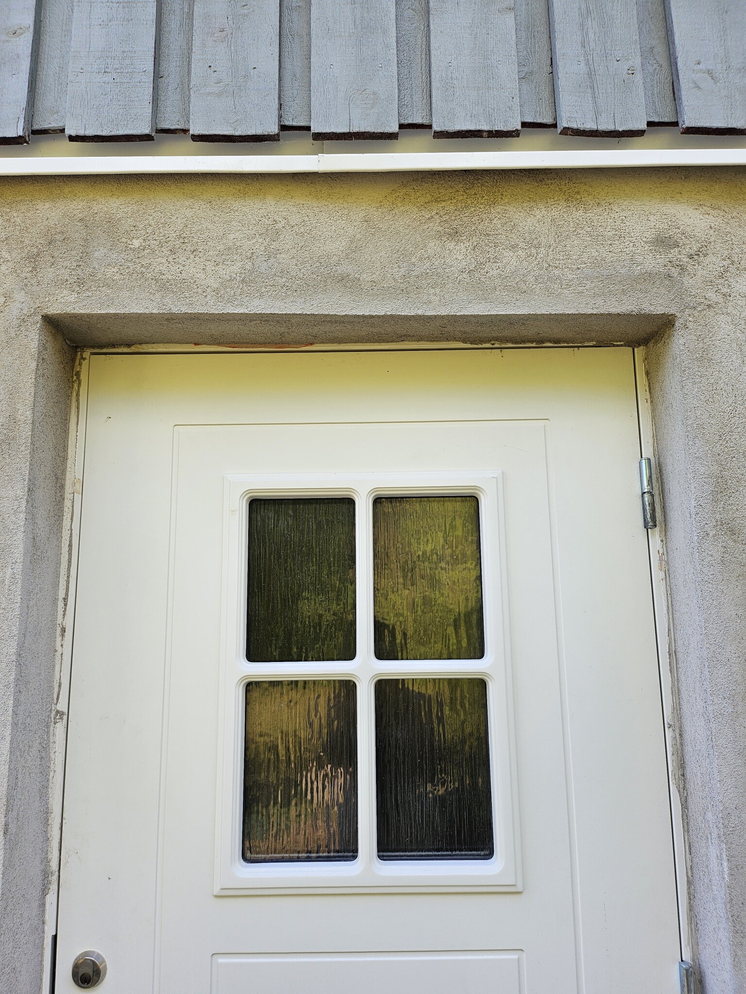 Smygen ovan dörren lutar ner på högersidan, inte så snyggt.