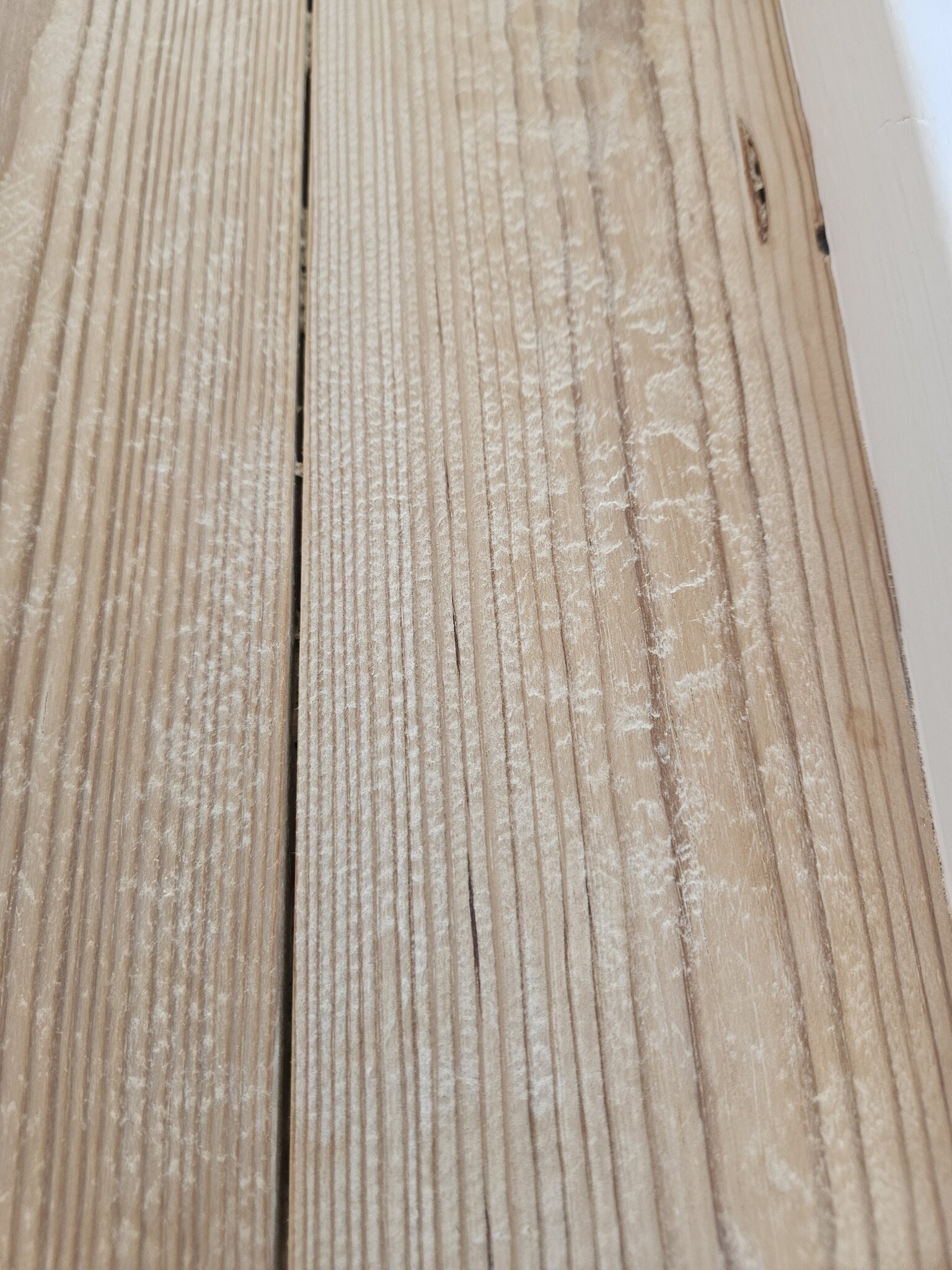 Jag har testat att skura hårdare och även mycket mjukt men samma resultat. Skurningen verkar endast gör träet mer förstört