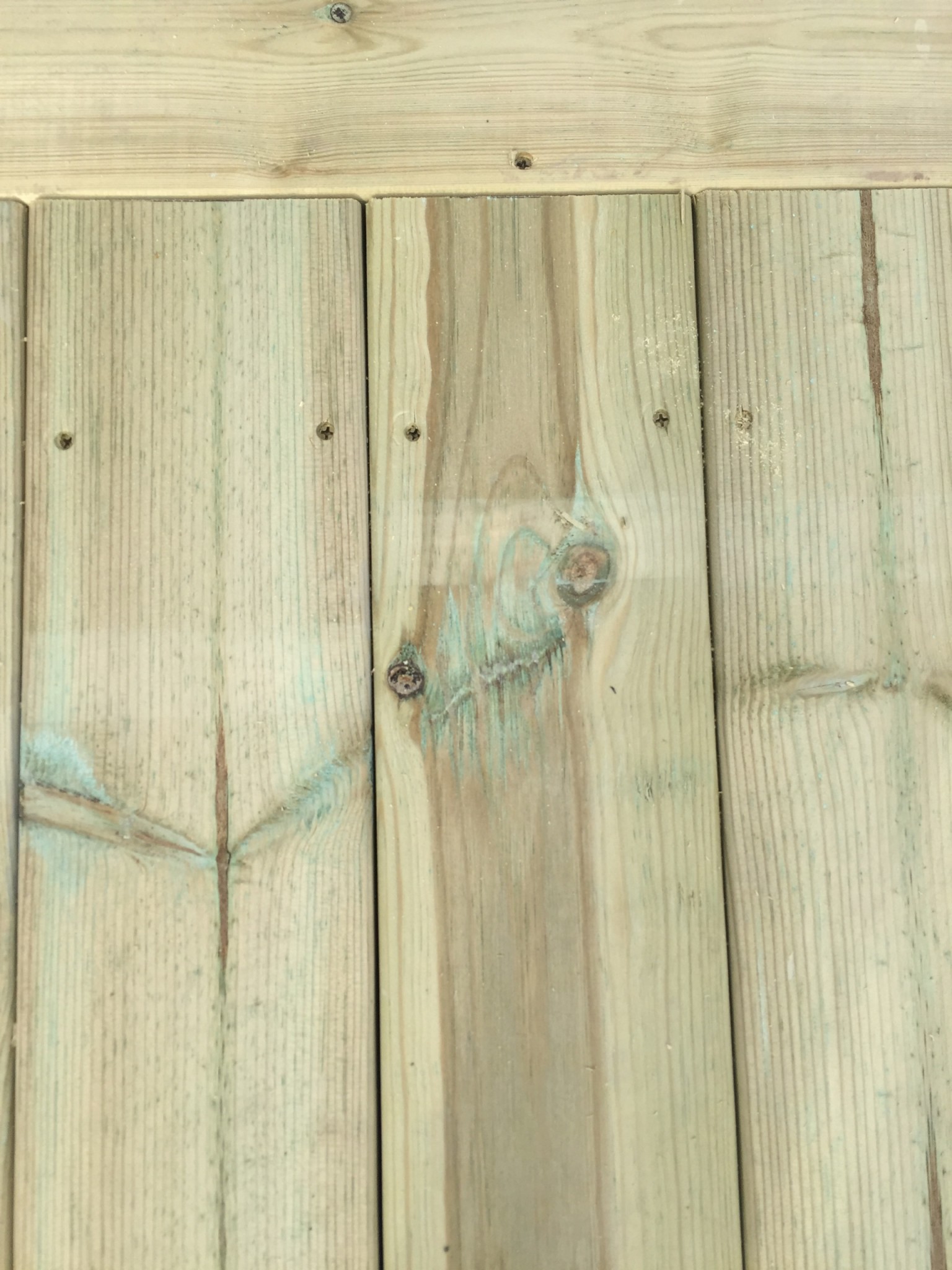 Den är väldigt ljus i färgen och inte alls lika grön/mörk som de impregnerade stolparna.