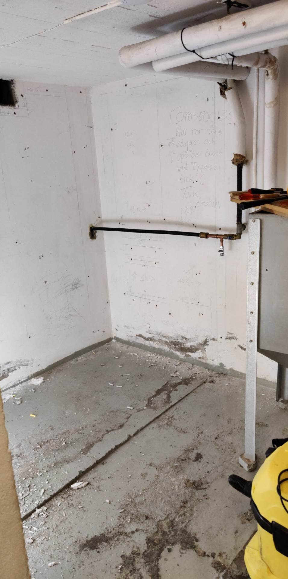 Håller på att byta ut husets 40-åriga pelletspanna till bergvärme och vill nu dubbla ytan i tvättstugan och ta bort det äldre brandskyddade pannrummet.