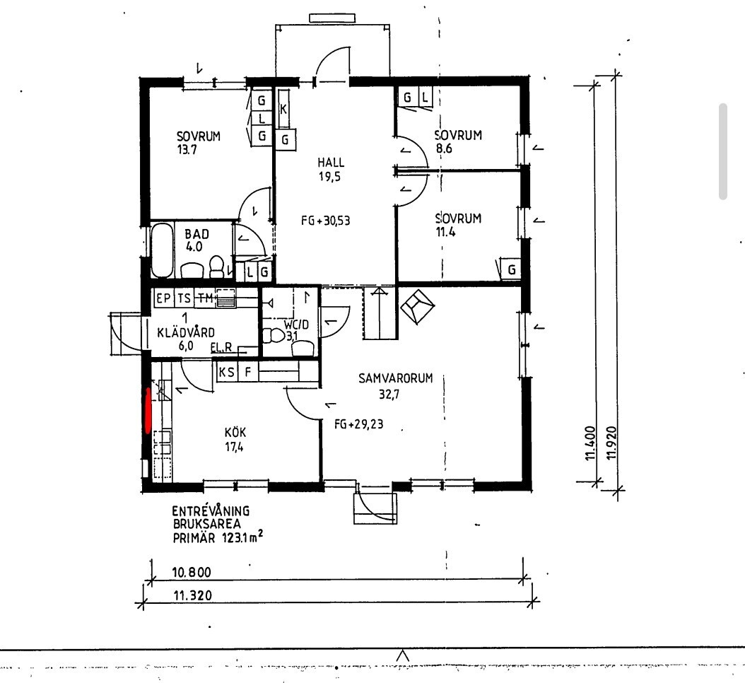 Jag skulle vilja ta upp ett 40x180 fönster i köket i samband med renovering, men jag blir inte helt klok på om yttervägg på kortsidan kan vara bärande.