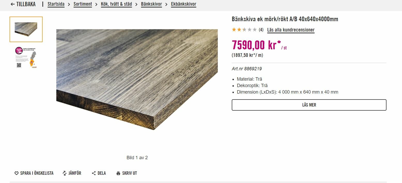 Själv köpte jag för ett par år sen tre stycken av nedan bänkskivor från "det andra" stora, orangea konsument-byggvaruhuset (Hornbach för de som inte förstod vinken).