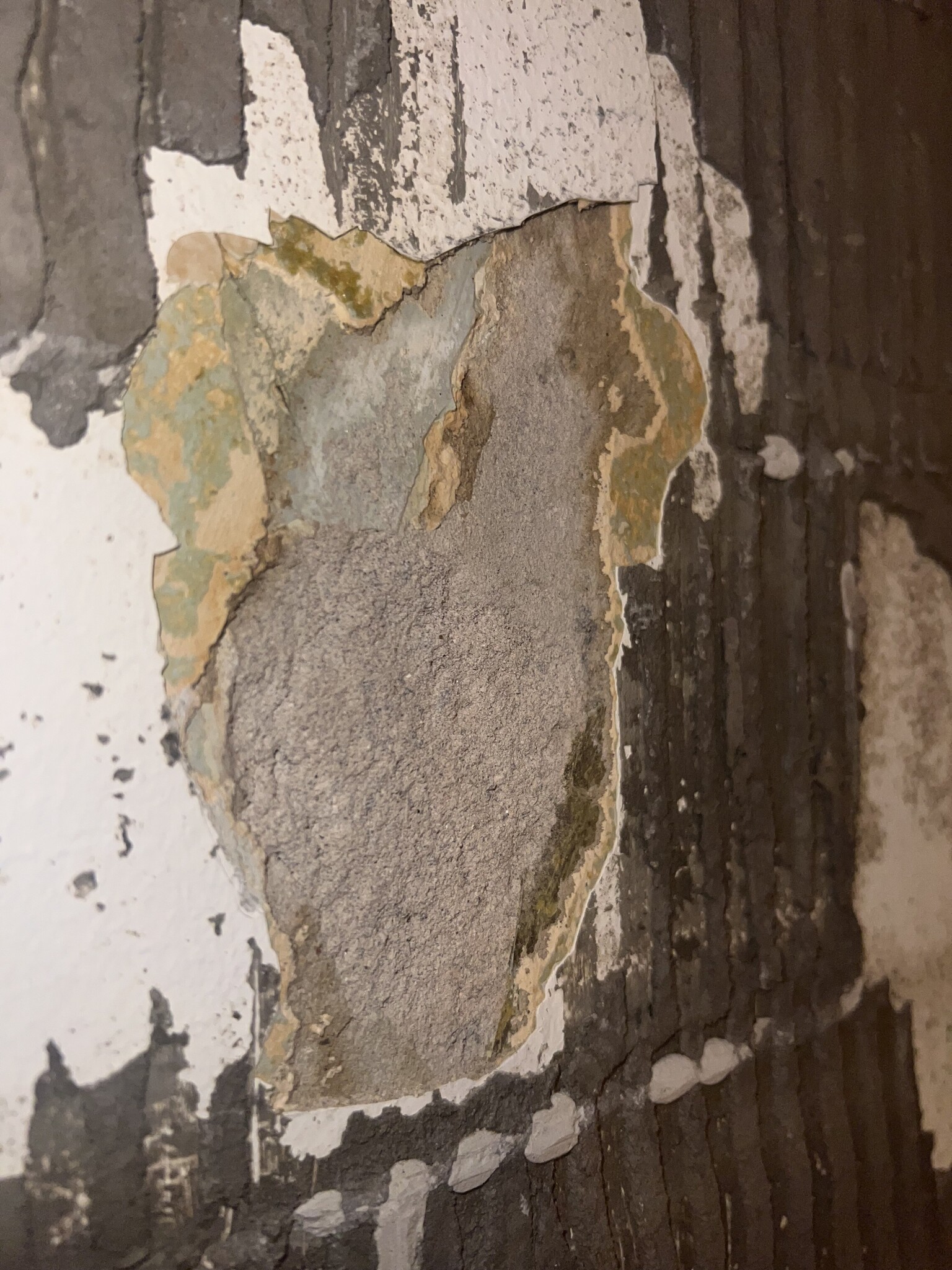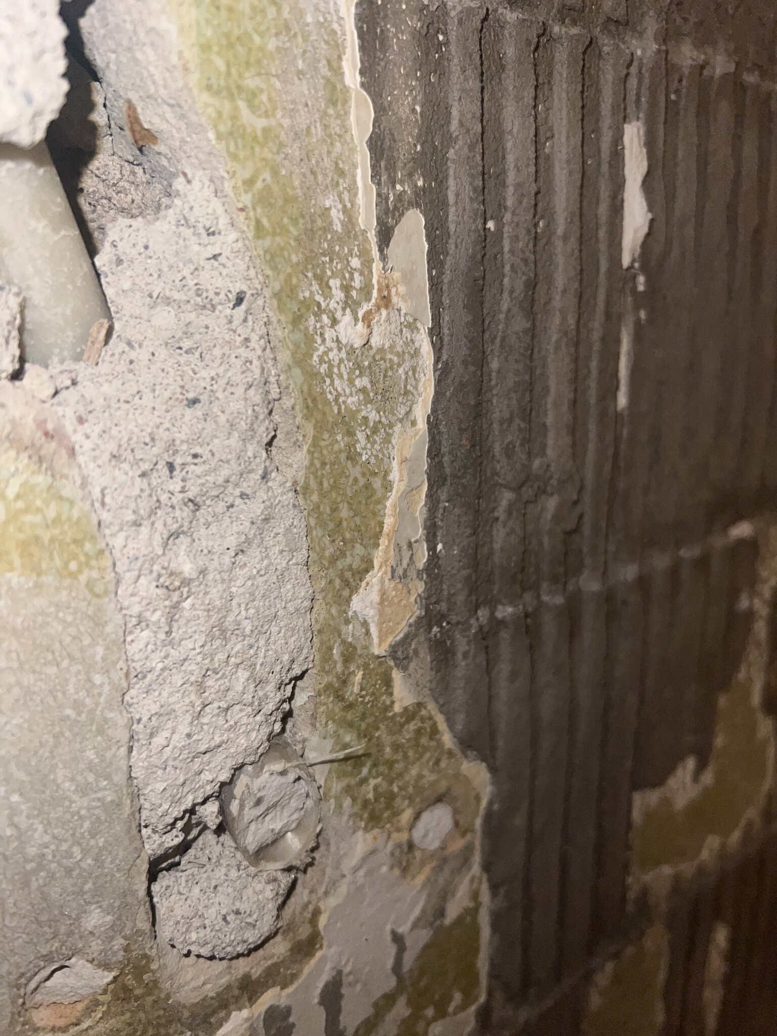 Hur vanligt var det att man blandade asbest i väggputsen bredvid en spis? Finns det något på bilderna som ser ut som gammal kakelfix?