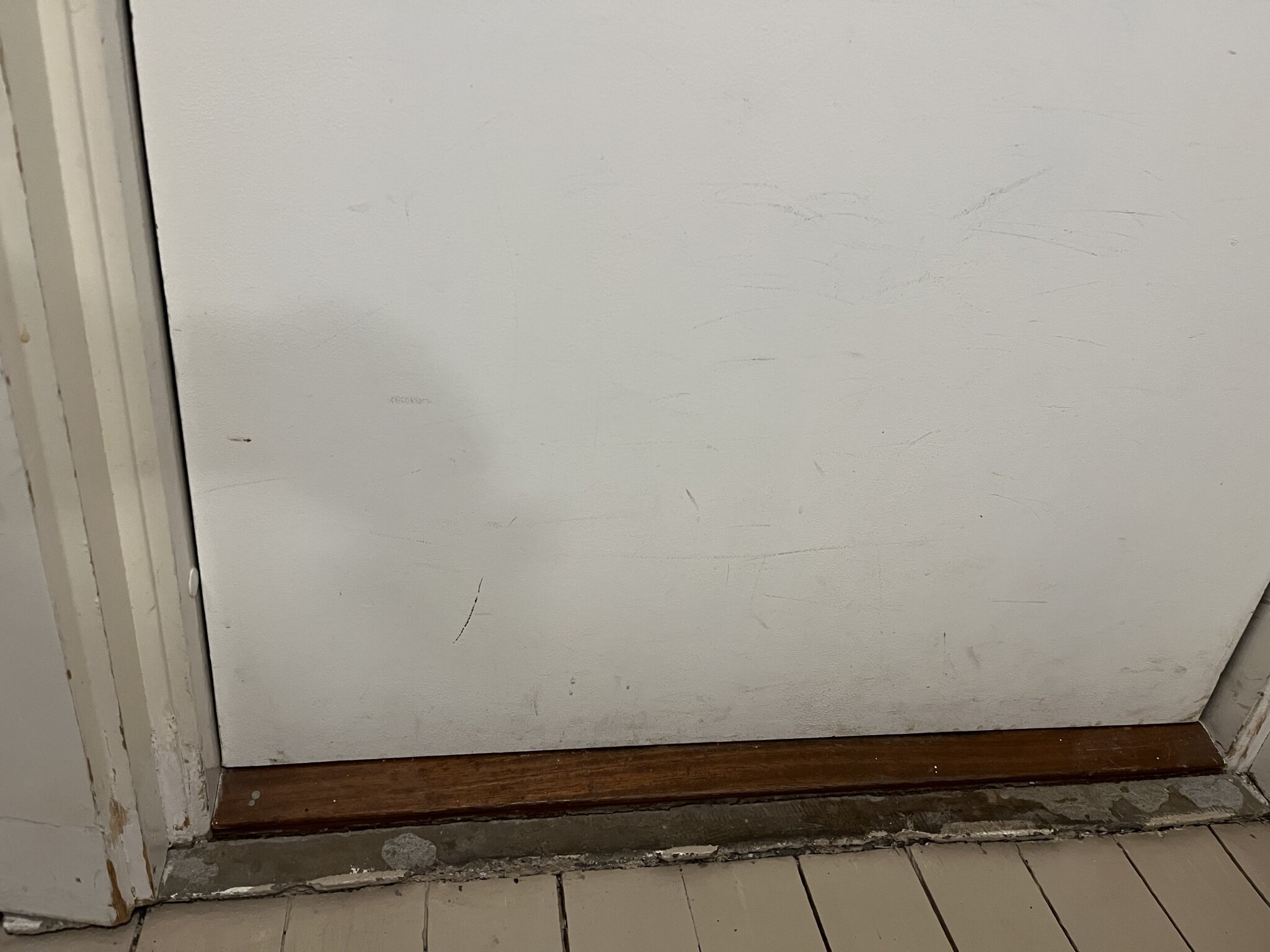 Fylla igen glipa under ståldörrens tröskel (våtutrymme)?