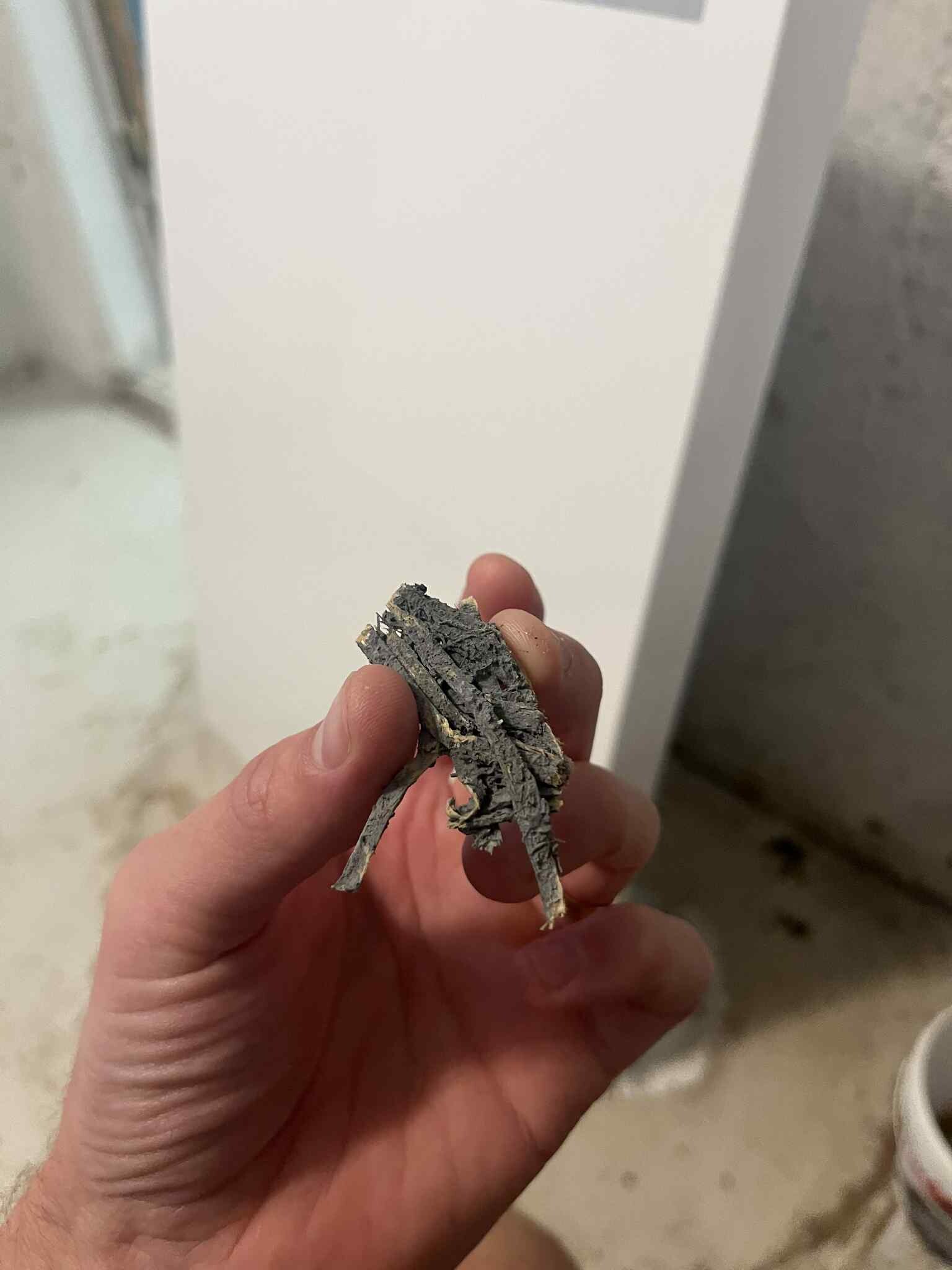 Som sagt det ser ut som "vanlig" träullit. Men om sådan någonsin har blandats med asbest, ingen aning. Men inte sannolikt.