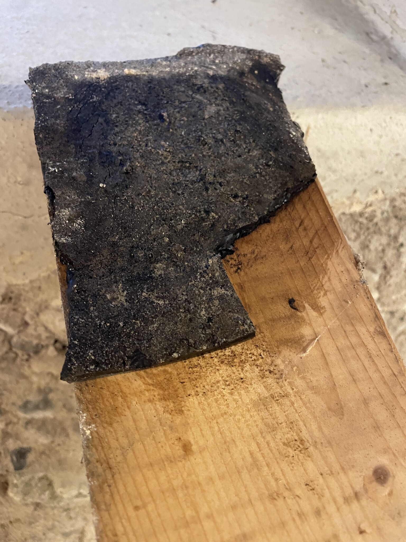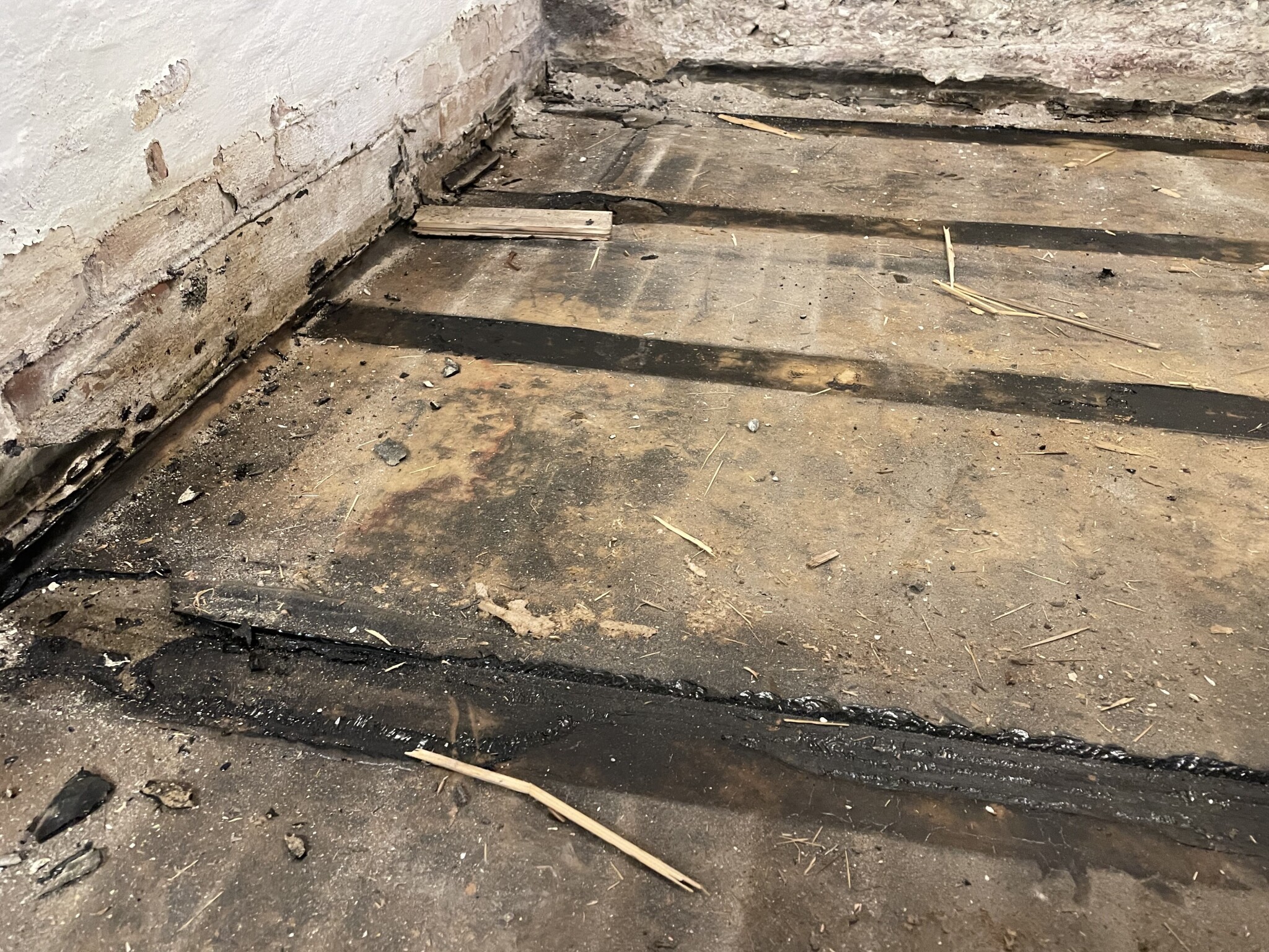 Jag har precis rivit uppreglade träväggar och ett trägolv i källaren på mitt hus från 30-talet. Misstänker att väggarna och golvet kommit till på 70-talet. Under golvet ligger en tjock svart mattliknande struktur, som jag misstänker är asfalt eller bitumen. Har dock ingen erfarenhet och vid sökning på forumet tycker jag att dom flesta asfaltsbilder är ”tunnare”. Är det någon vänlig själ som vet och kan upplysa? Vad kan man göra för att få bort det? Försöka riva själv eller ta in hjälp med blästring? Eller helt enkelt bara låta den vara?