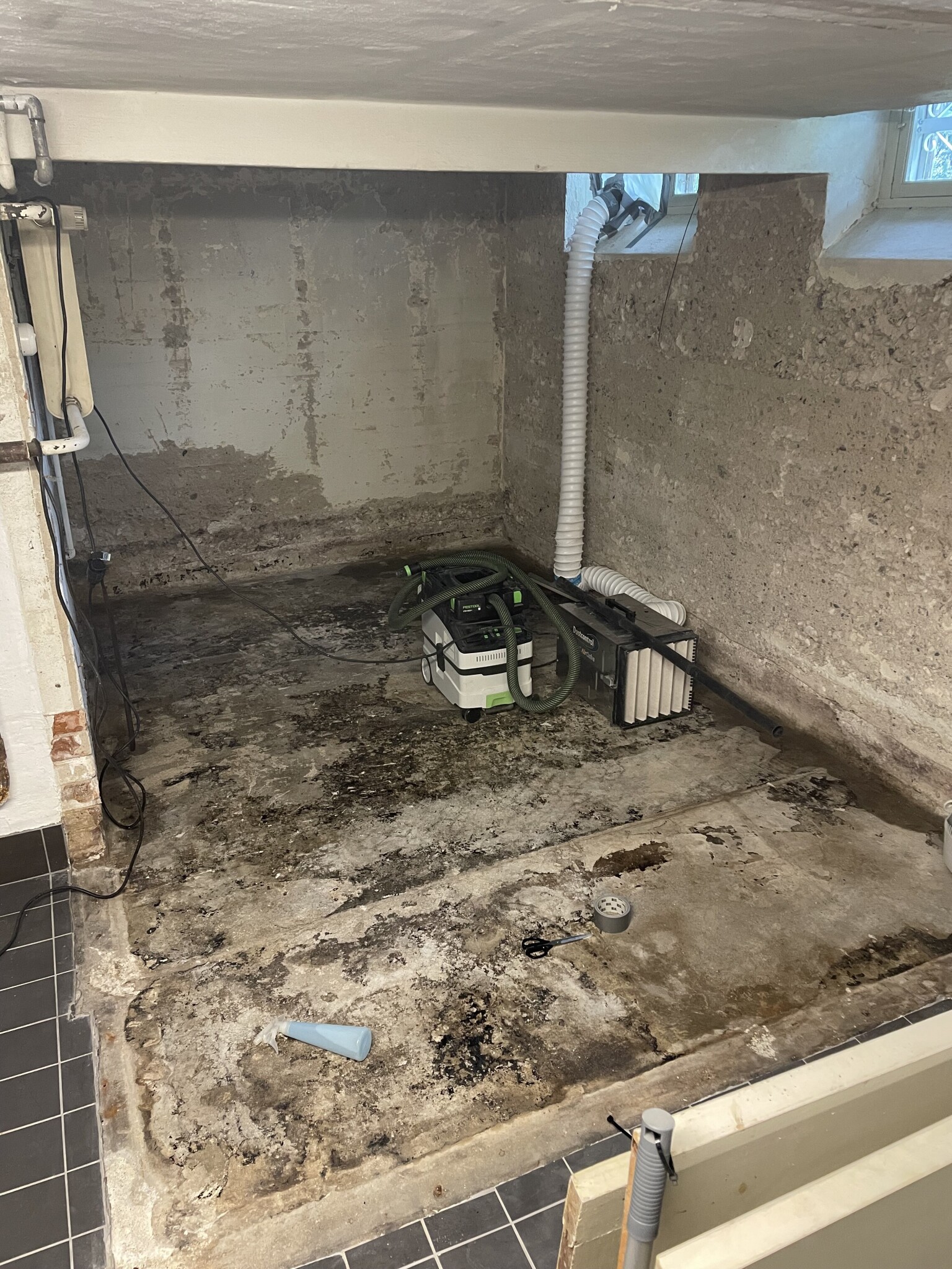 Jag plastade in, hyrde en dammfälla/luftrenare och skapade undertryck med hjälp av utblås. Sen rev jag upp asfalten/takpappen manuellt med kofot och barkspade. Jobbigt som tusan, men gick på några timmar. Nu är det små rester kvar, men inget tjockt. Tänker att jag borde kunna lägga klinker relativt enkelt på det nu.