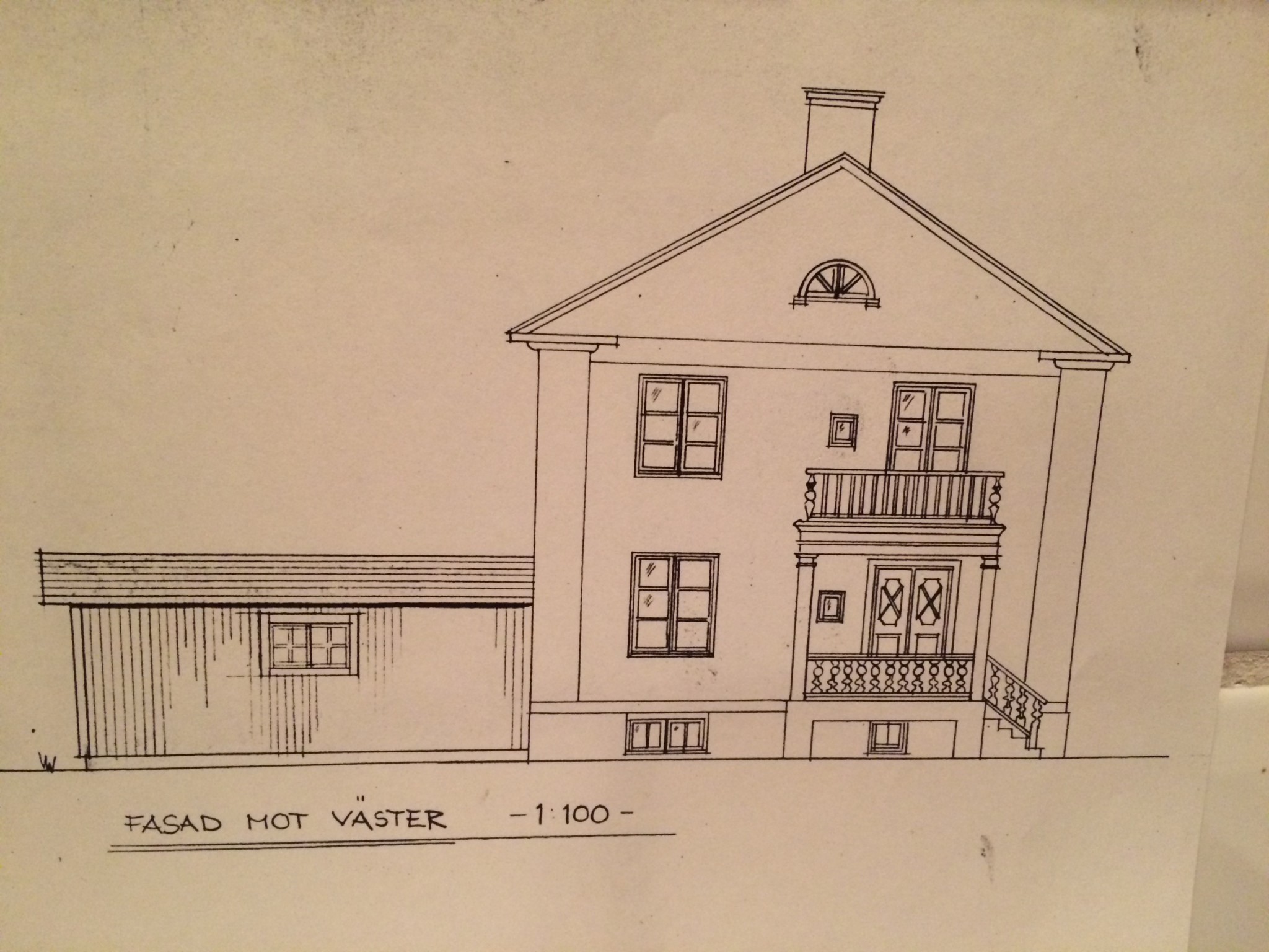 Vi bor i ett putsat stenhus från 1920 talet som blev tillbyggt med dubbelgarage sent 80-[tal som inte stämmer med huset i övrigt. Trädgården ligger bakom huset vid garaget och tyvärr finns ingen utgång till trädgården åt norrsidan då garaget tar upp stor del av denna yta. Från garaget går en trappa ner i källaren vilket är mycket smidigt att ha.