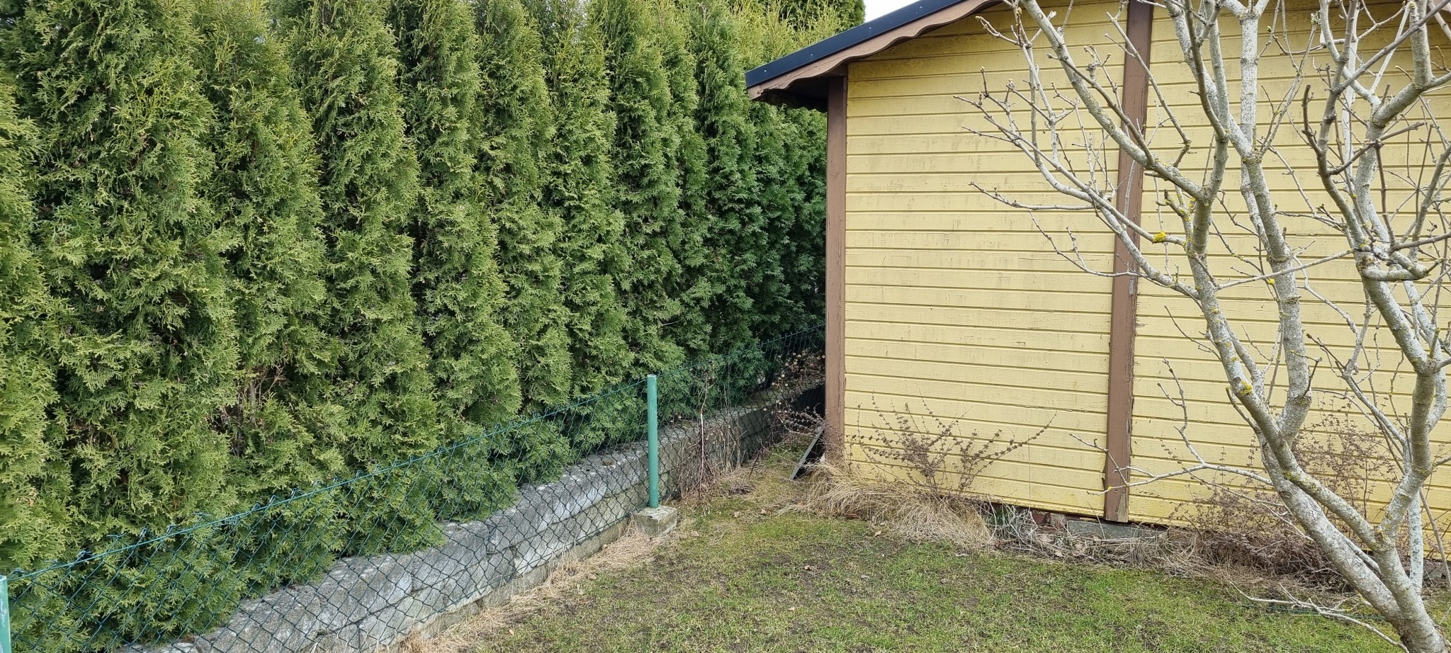 Vid de andra ställen där det inte finns någon häck hade jag satt upp egna tujaplantor så ser det enhetligt ut och snyggt.