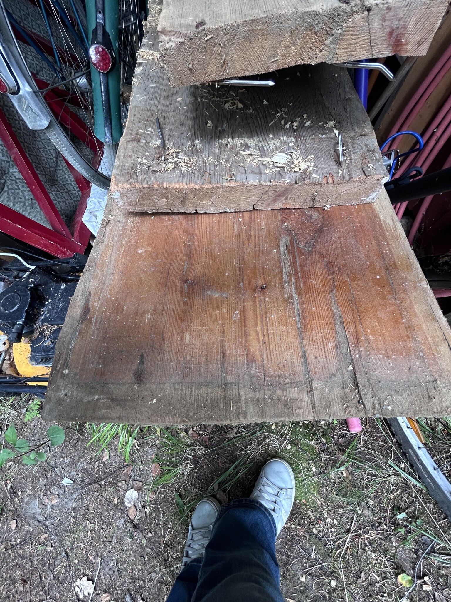 Anledningen till det var att golvplankorna var så jävla rejäla att jag tänkte att det går att ha till något annat och lägga in ett nytt golv i mitt lilla härbre istället.