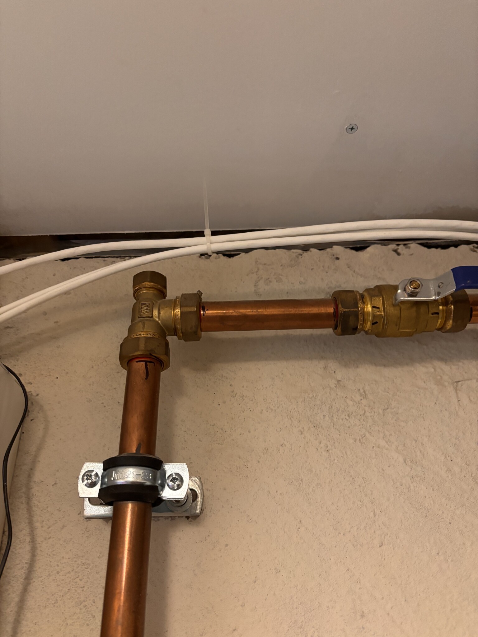 Jag vill ju gärna provtrycka fördelaren (med alla kopplingar anslutna) före allt byggs in i badrummet så tänker att jag ändå ska ansluta en provtryckare vid ena ändan av fördelaren. Men kanske pluggar det sen med klämring+plugg efteråt då.