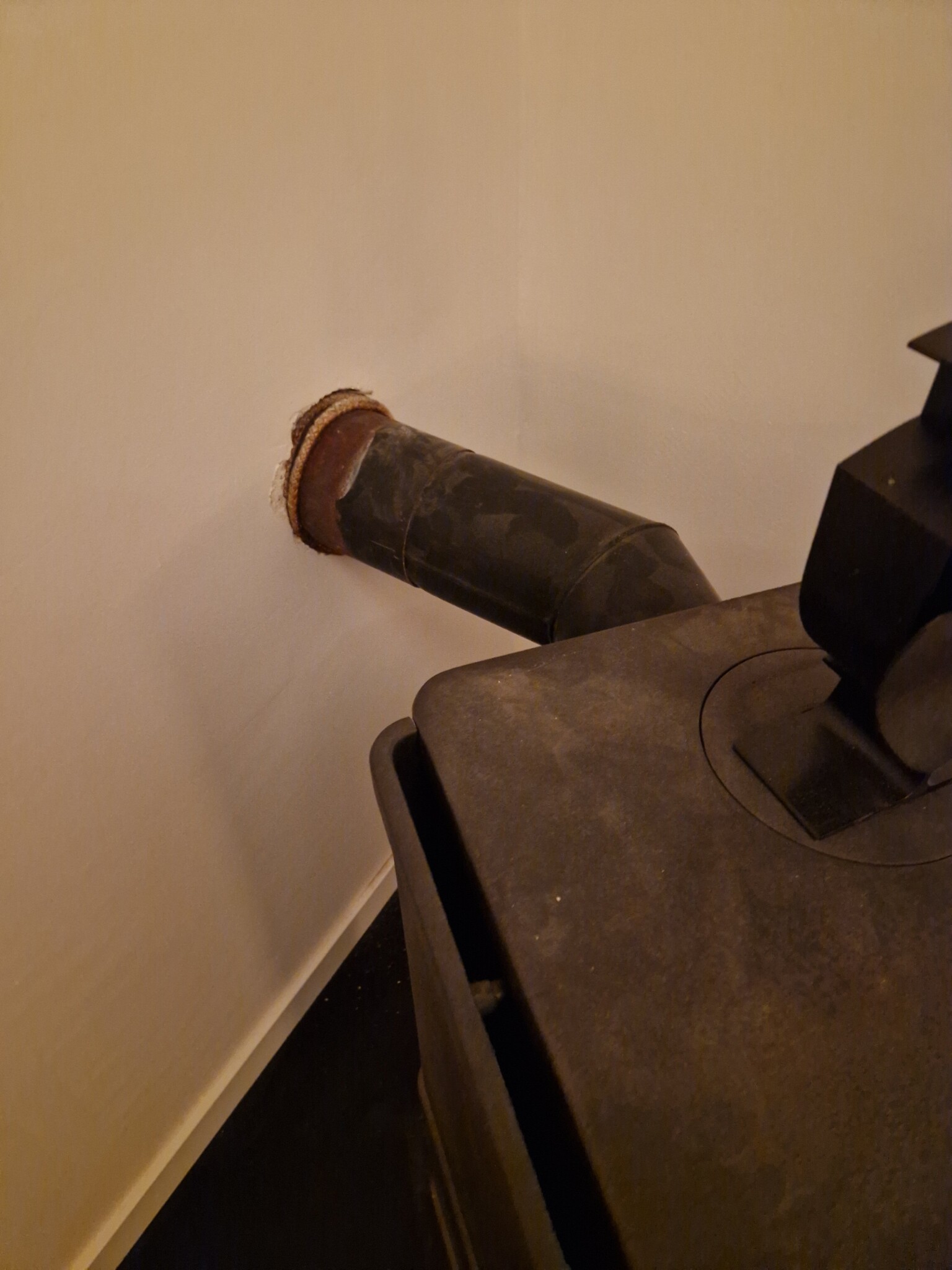 Efter rumsrenovering är det dags att återmontera kaminen. Röret från kaminen som går rätt in i murstocken var endast tätad med tätningsgarn (tror jag det kallas).