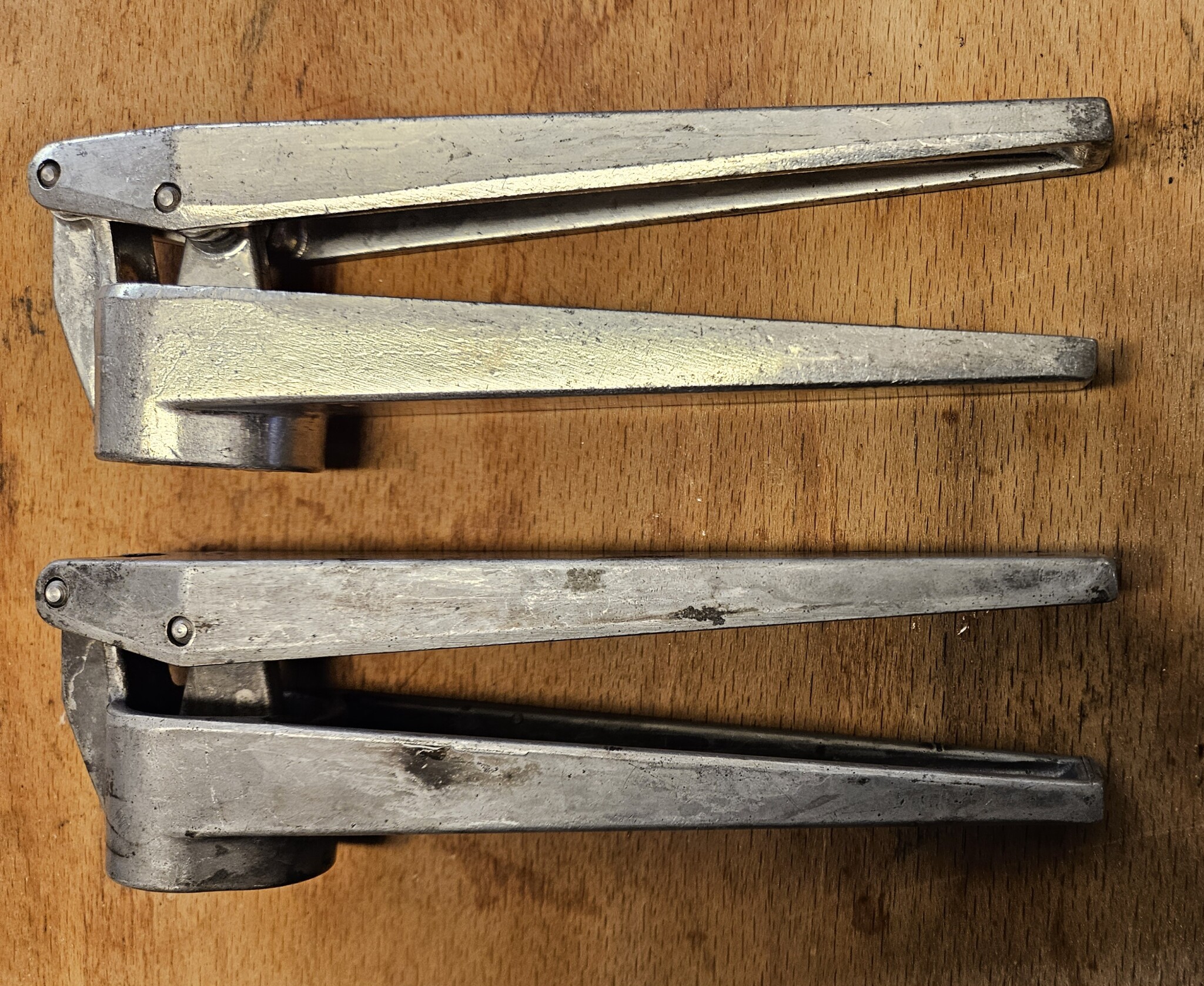 När jag insåg vad en vitlökspress gjorde med smaken slängde jag min. Den såg ut så där. Varför har du två? Rotade du i mina sopor någon gång på 90-talet?