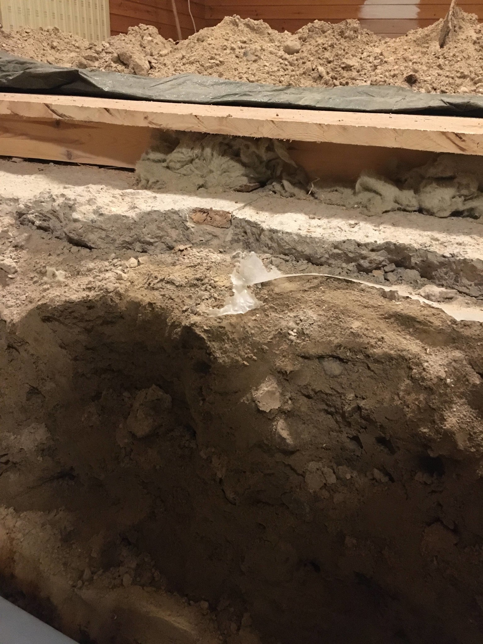 Bakgrund: Bytt avlopp i samband med dränering. Behöver nu återställa golvet i gillestugan.