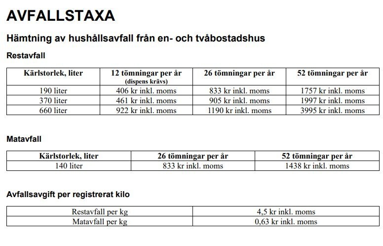 Dvs att soptaxorna i norr är höga! Inget man kan gå "offgrid" med heller när det tom krävs av sommarstugor soptaxa.