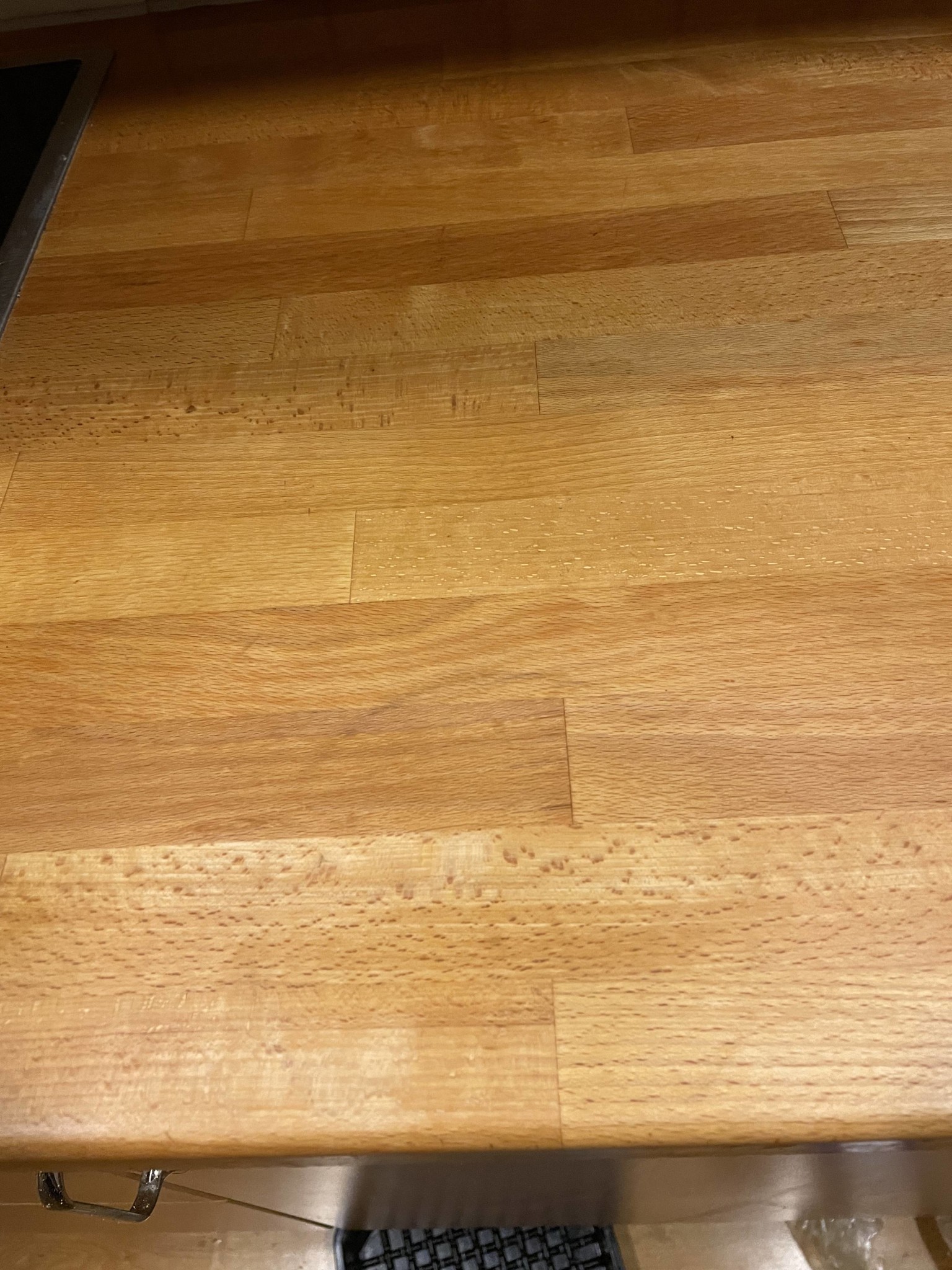 Vet inte om det syns på bilden så tydligt men ytan är lite ”skadad” förutom själva brännmärket.S Stefan1972 skrev:Jag skulle ta fin scotchduk och försiktigt behandla hela bänken. Den duken kan du med fördel dränka i olja samtidigt du "slipar" . Dylik slipduk finns lite överallt. Ser ut som det gröna på en disksvamp men har olika grovlek som slippapper. Du kan behöva gnugga lite extra runt brännmärket men troligen får du bort det svarta så pass att det inte syns.