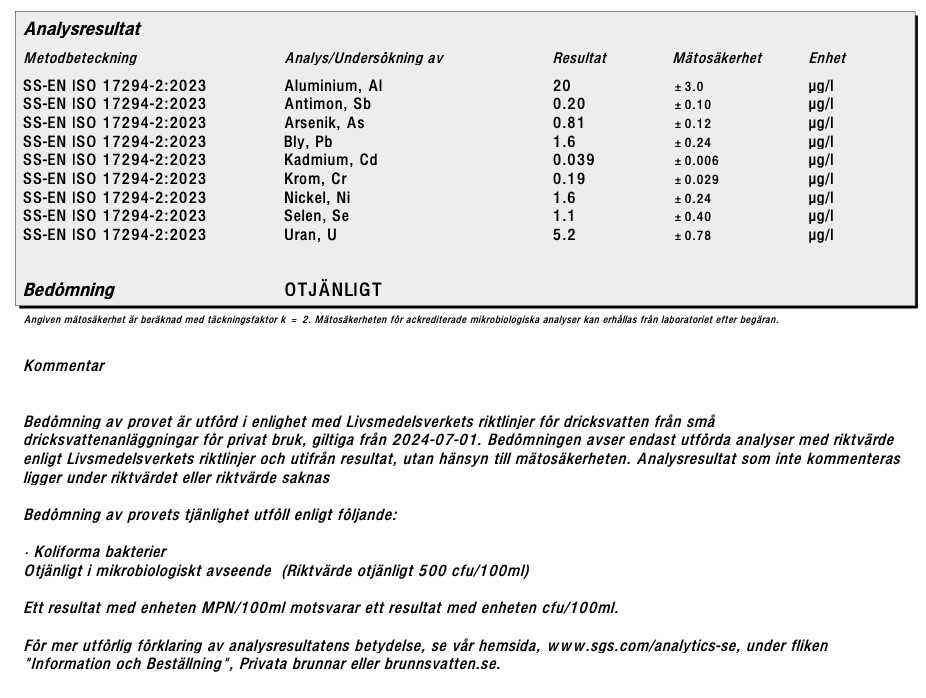- Vi hade använt brunnen regelbundet under ca 2-3v innan provet togs