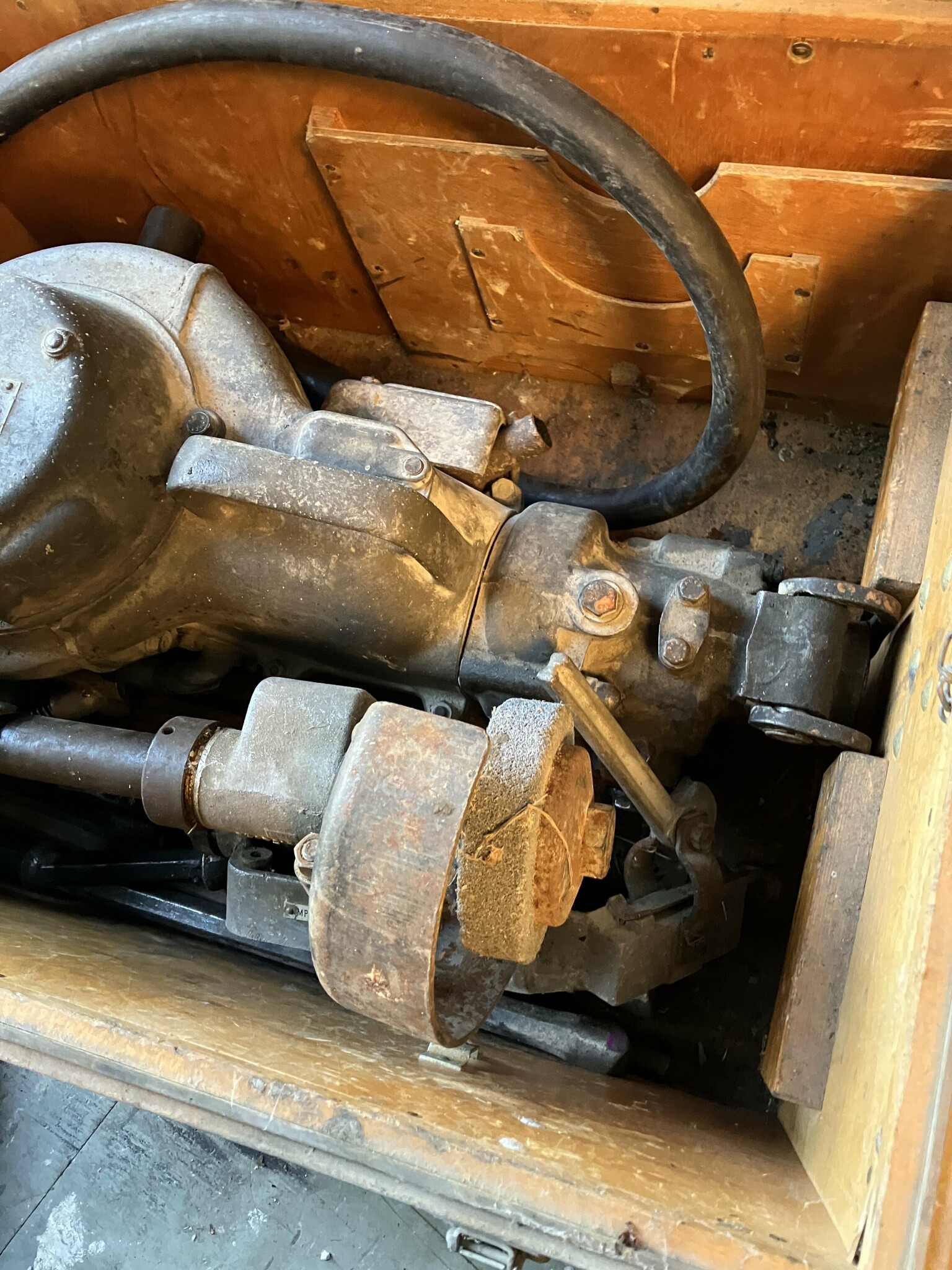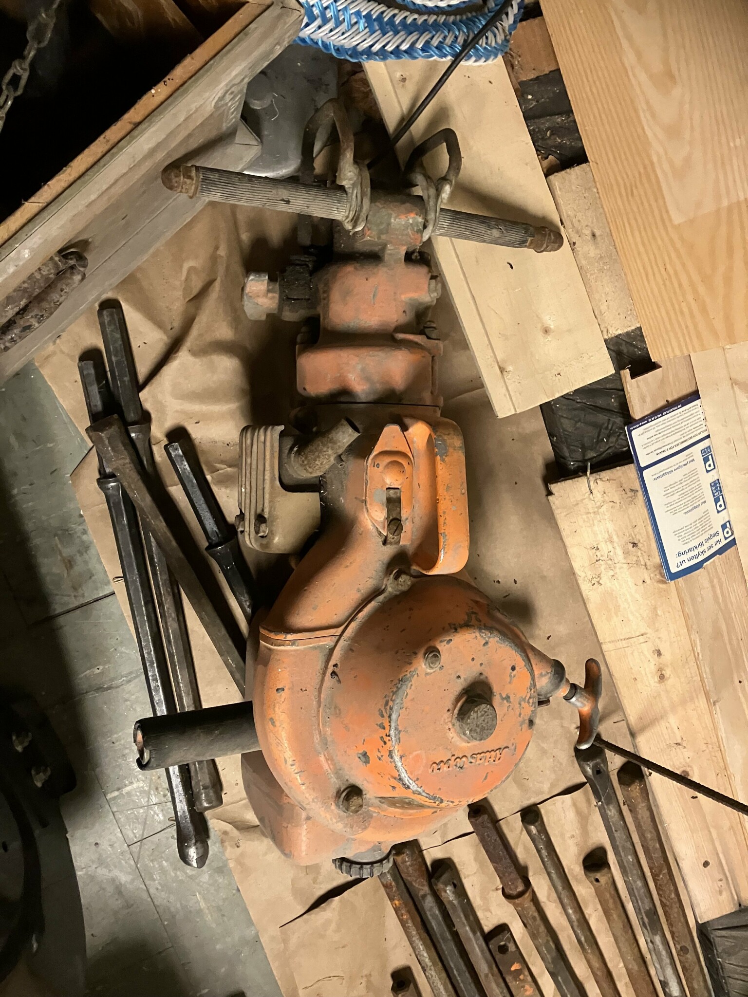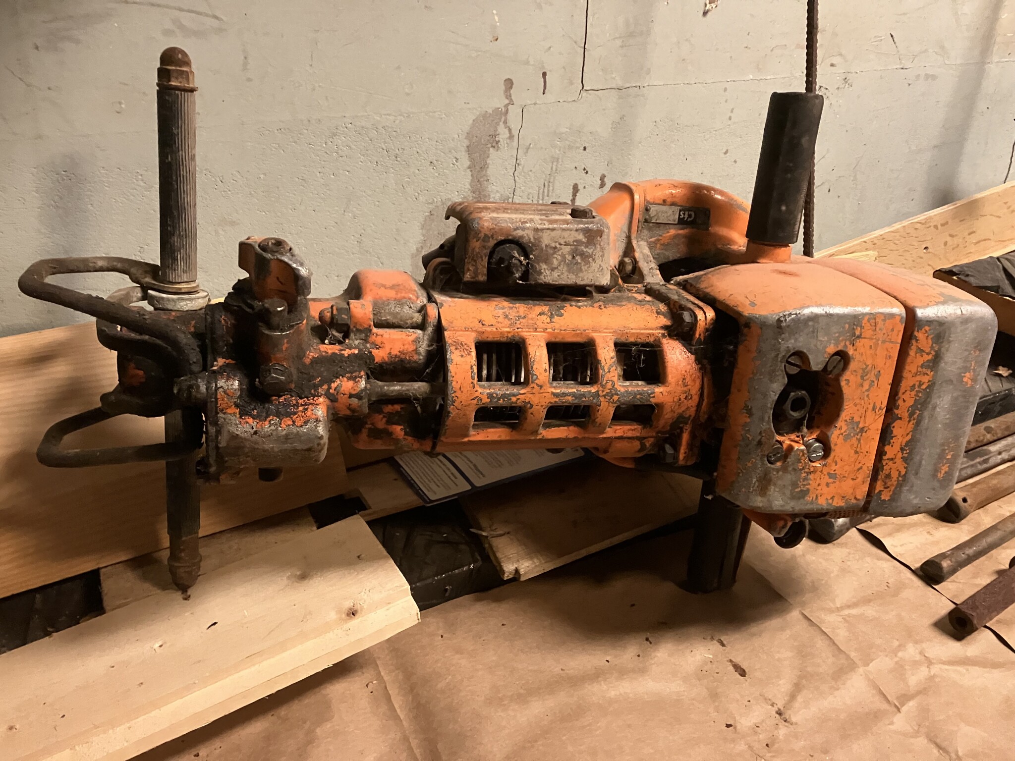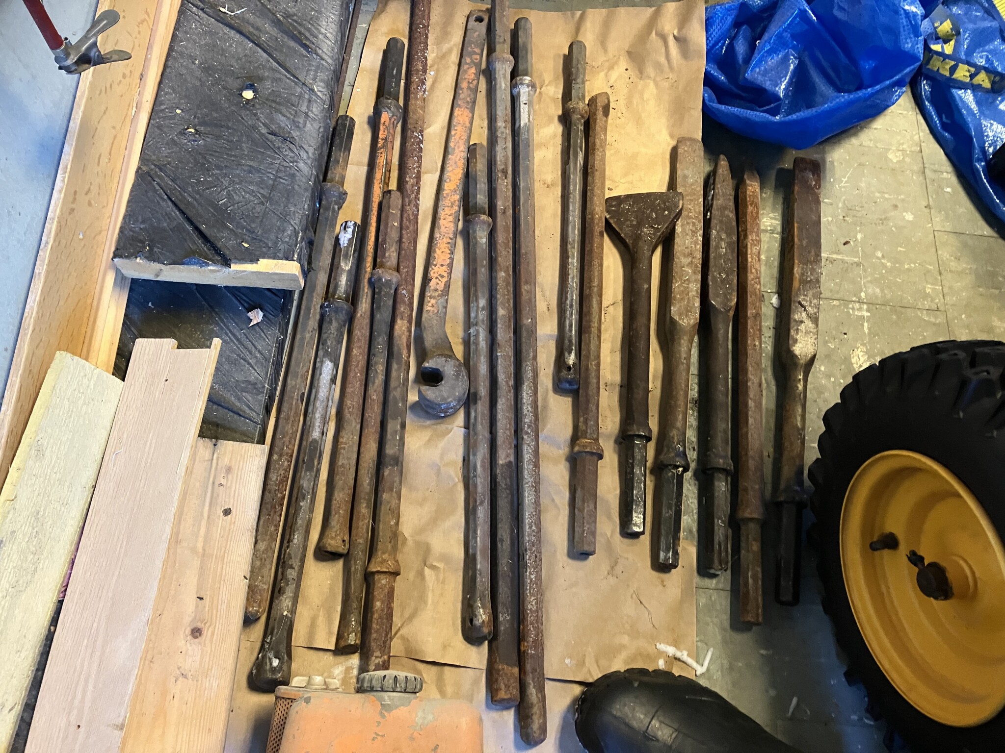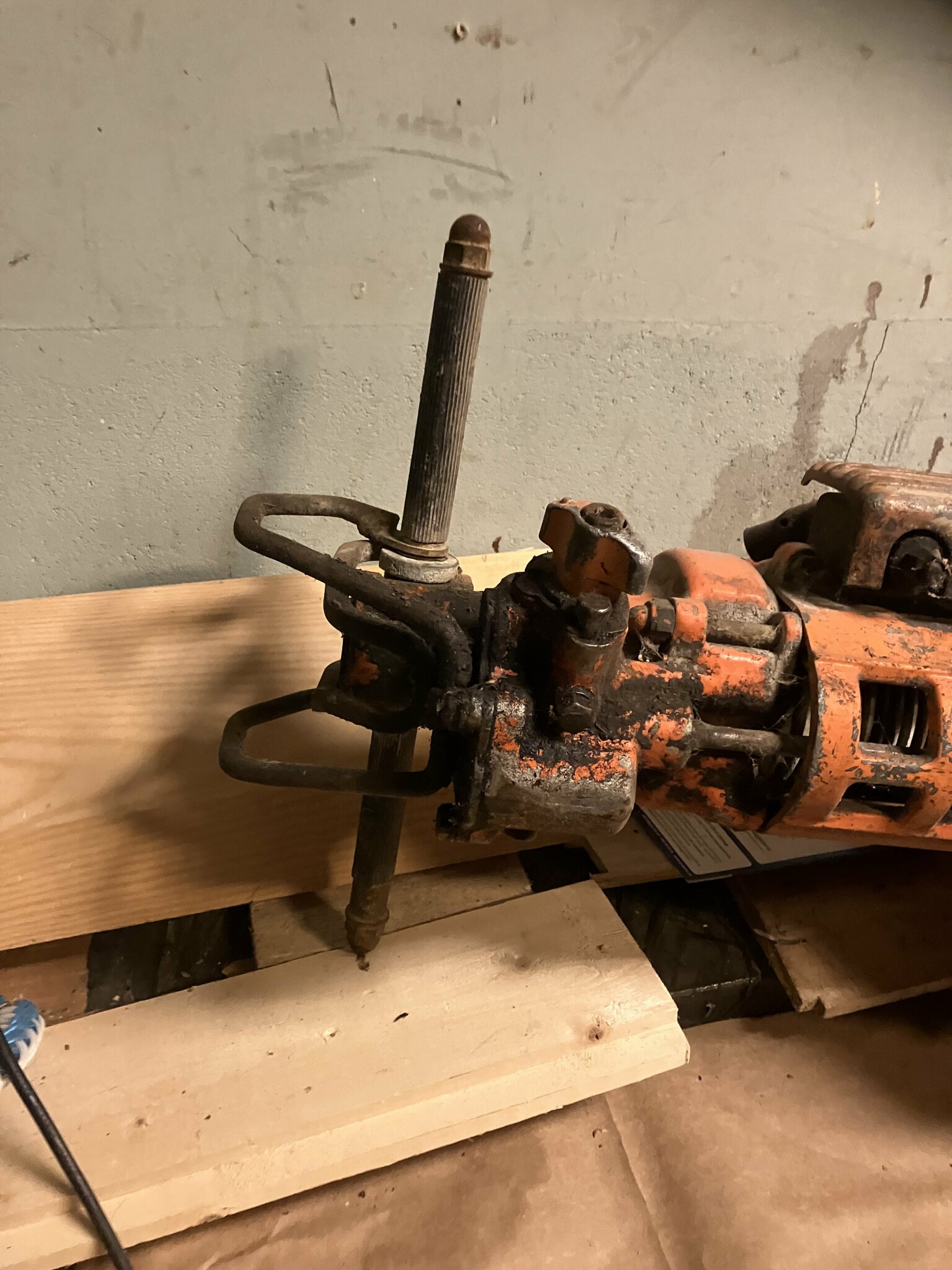 Följde även med vajerdriven borrslipmaskin som man kopplar ihop med borrmaskinen för att få rotation på slipskivan samt mycket borrar spett mm