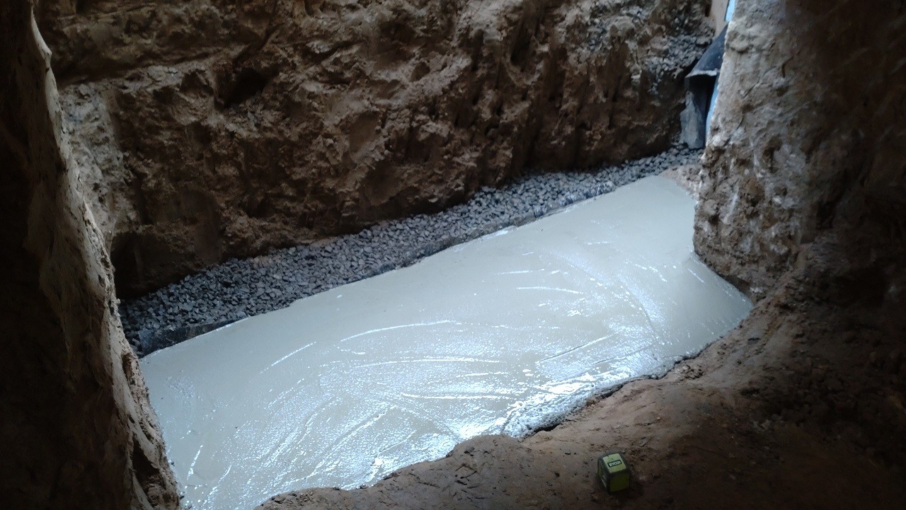 Bort med platån, gjutning av golv och vägg och sedan putsning.