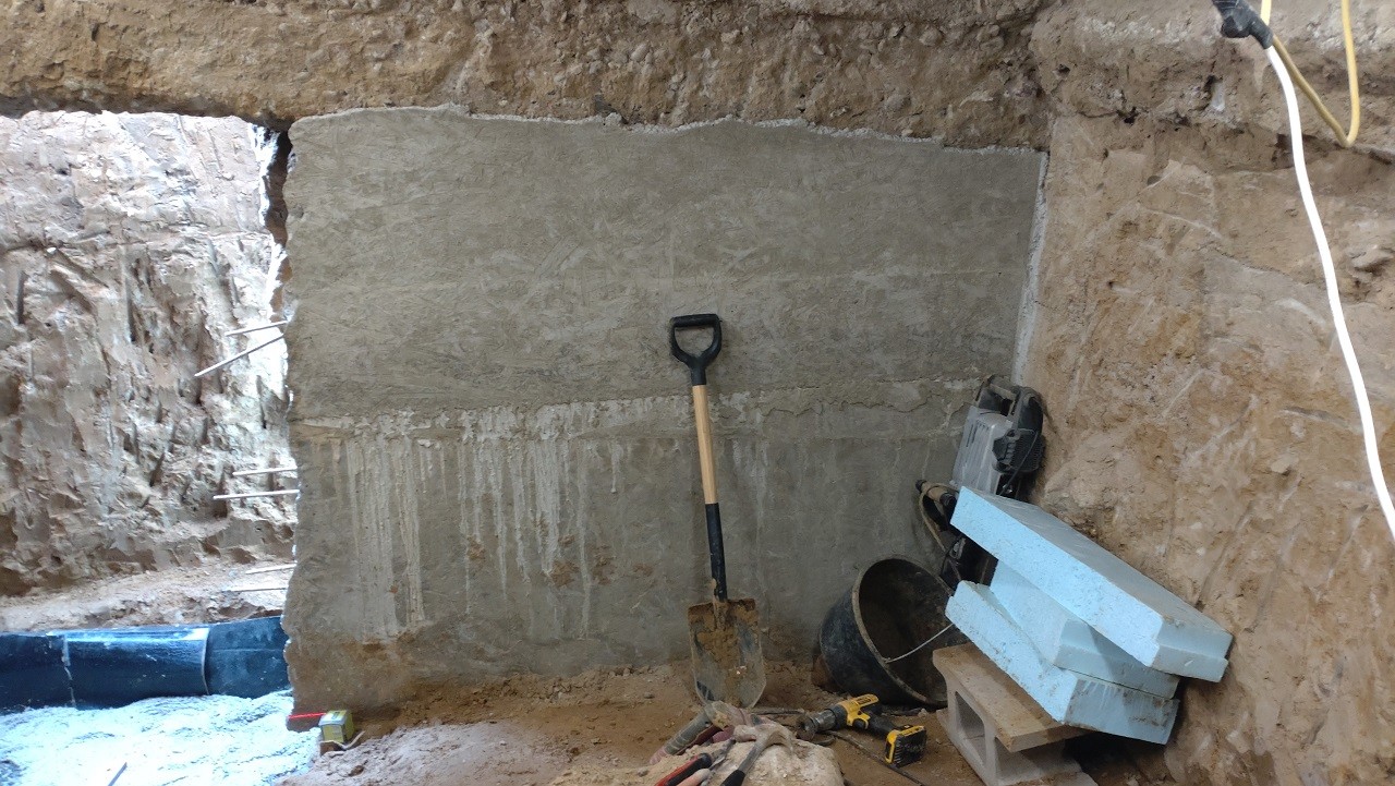 * Dränage och isolering är färdigställt både kring den gamla utgrävningen samt den nya.