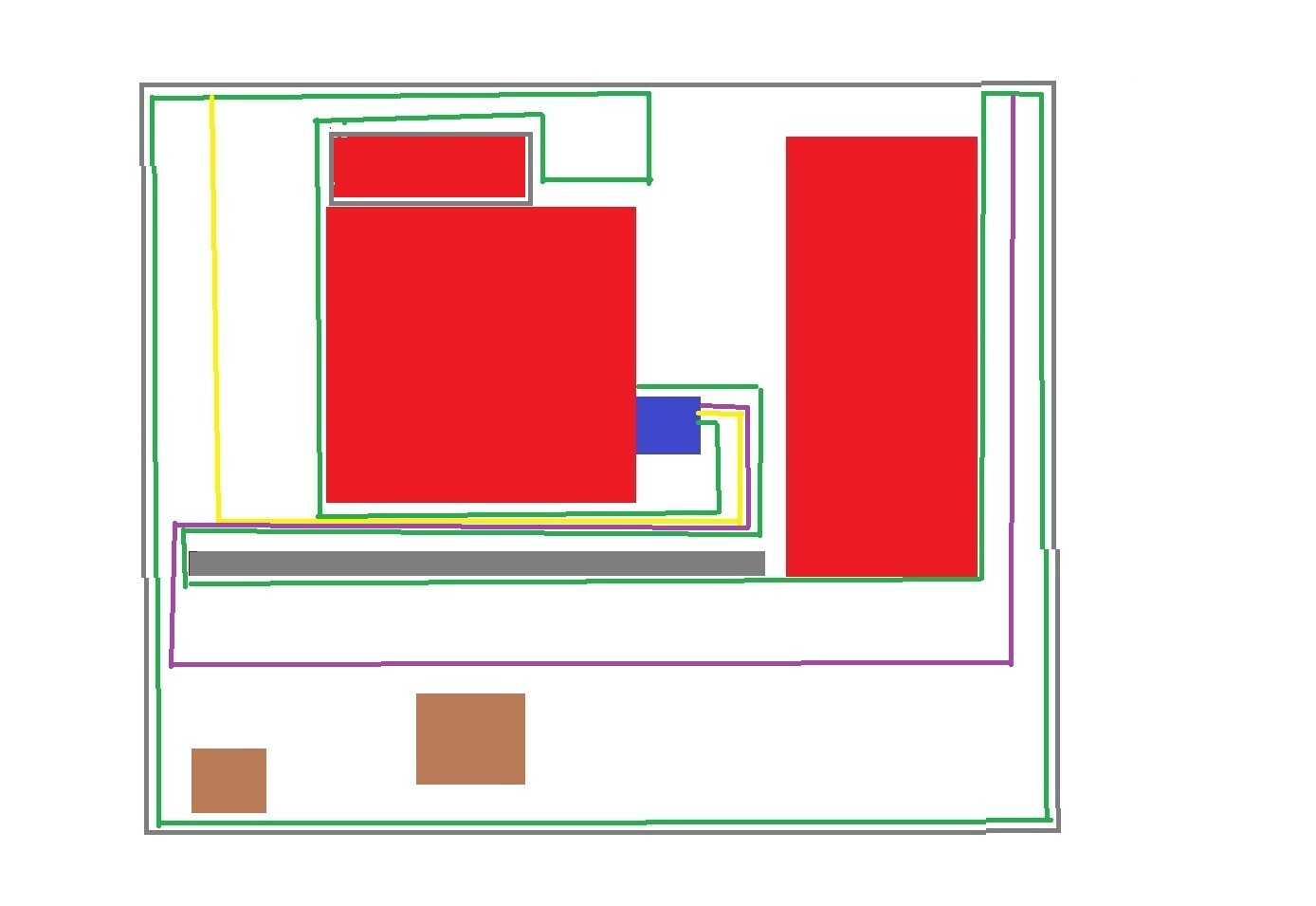 Första frågan:K Kalle_Banan skrev:Skulle man kunna skarva guiden med en sån här, alltså kopplar ihop där de möts (gul/lila) och sen i vardera ände som jag redan gjort i övre vänsterhörn? gör samma sak på andra sidan gården eller blir det kortslutning då?