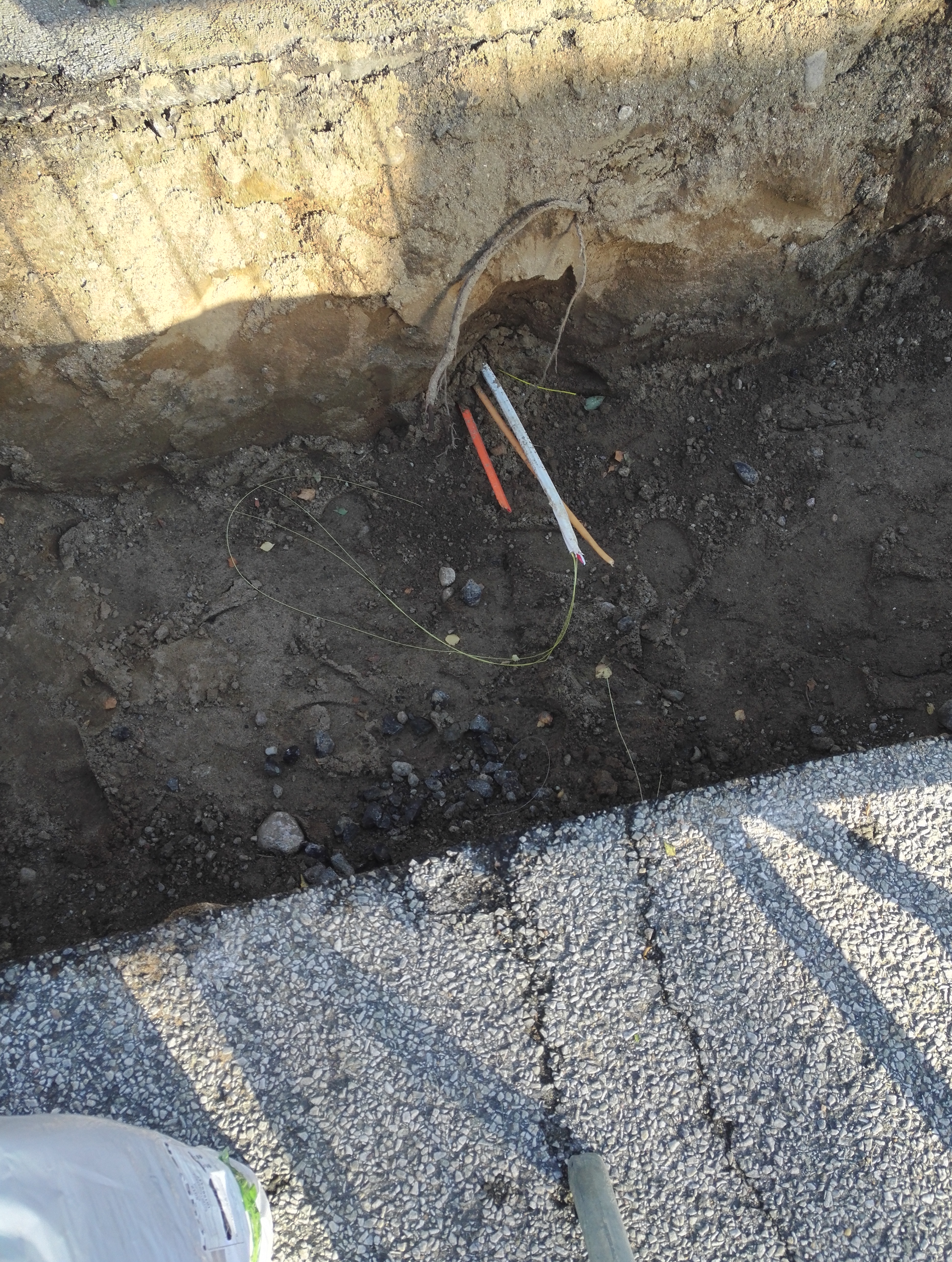 På bilden ser man att det finns flera ducter som är avslitna men inte syns då det sticker ut en microkabel/fiber, den gula tråden, ur jorden där ducterna försvinner in. Så har du inte fått ny fiber blåst är inte din anslutning åtgärdad för jag tror att merparten av de avslitna ducterna/fiber är anslutningar till villor.