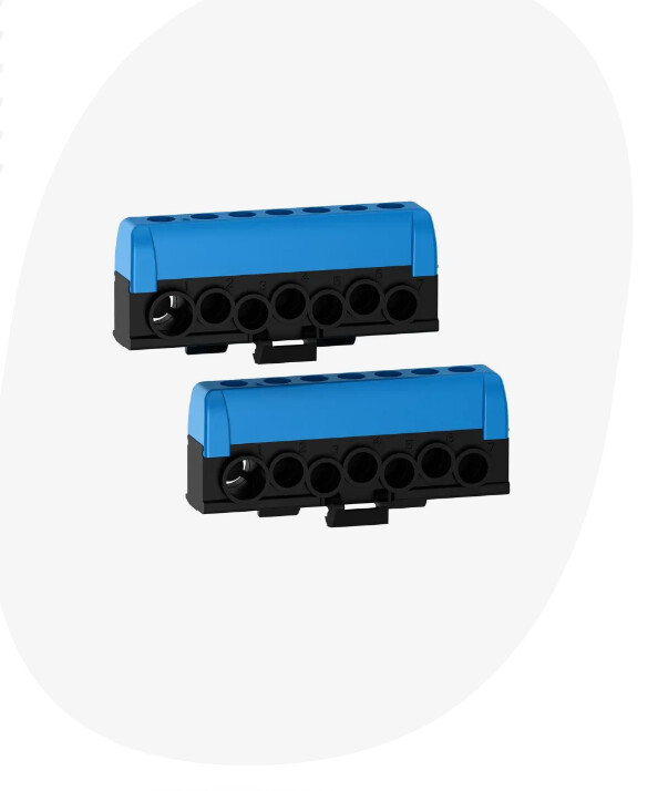 För att inte ta för mycket plats på DIN skenorna så har Resi9 en smart lösning vid varje hörn på elcentralen med plats för 4st plintar bakom dinskenorna. Där kan du exempelvis skarva PEN ledaren. Följer med en 4-klämma i centralen, men kan köpa till 7 klämma.