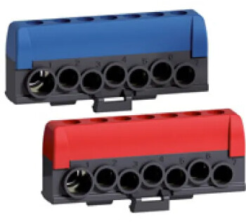 Ett alternativ som jag vanligen använder är denna typ av plint med varsin dubbel skruvklämma per ledare. Den tar ju grövre ledare ifall huvudledningarna bytes i framtiden. Det finns färdiga fempoliga varianter som EKS525. Den har då en ledig klämma för eventuell ny utgående huvudledning i framtiden.