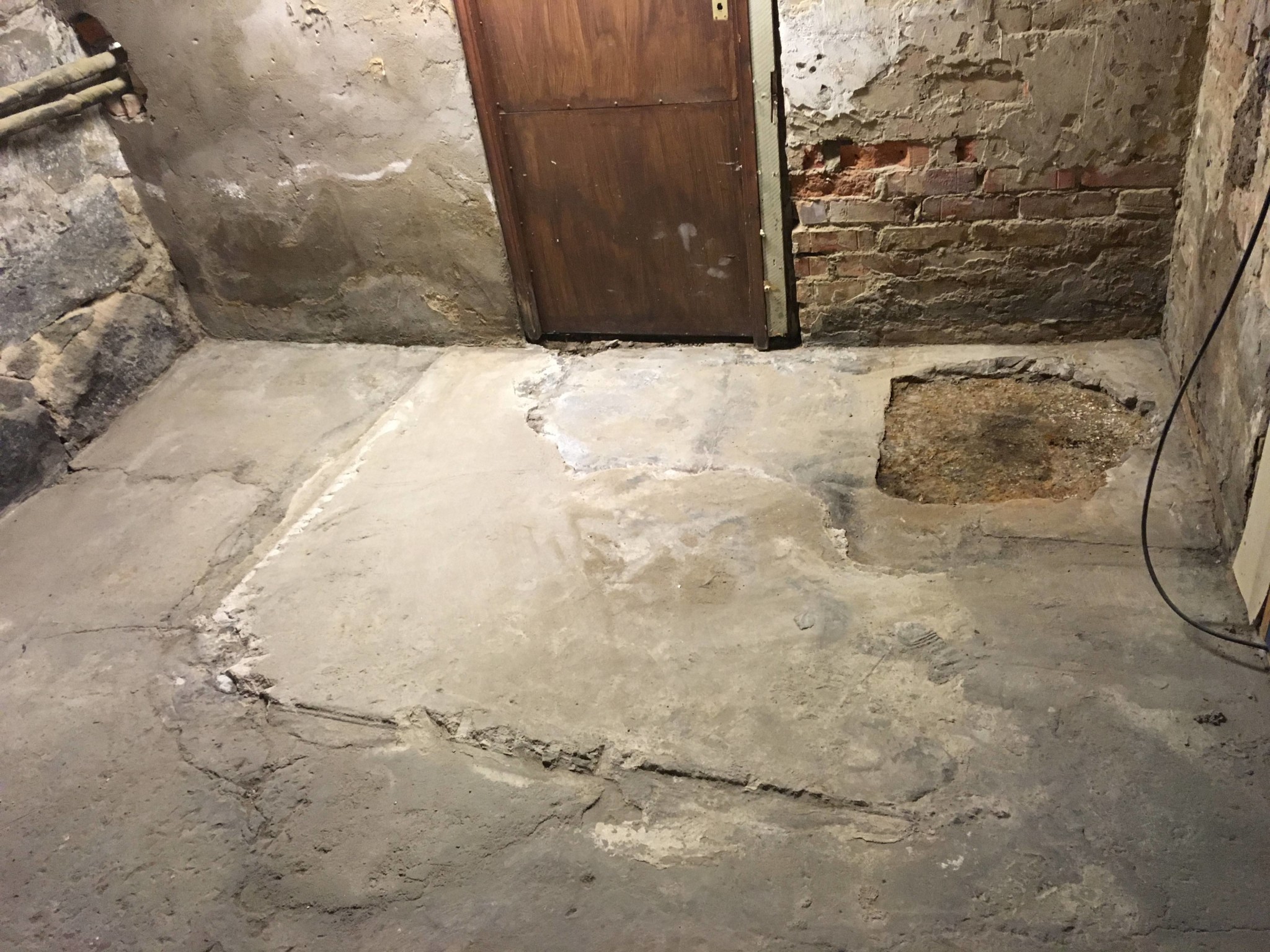 Aldrig sett fuktfläckar på golv eller vägg, men det luktar ändå lite källare där nere och flyttlådor som stått på golvet i pannrummet har blivit fuktiga i botten.