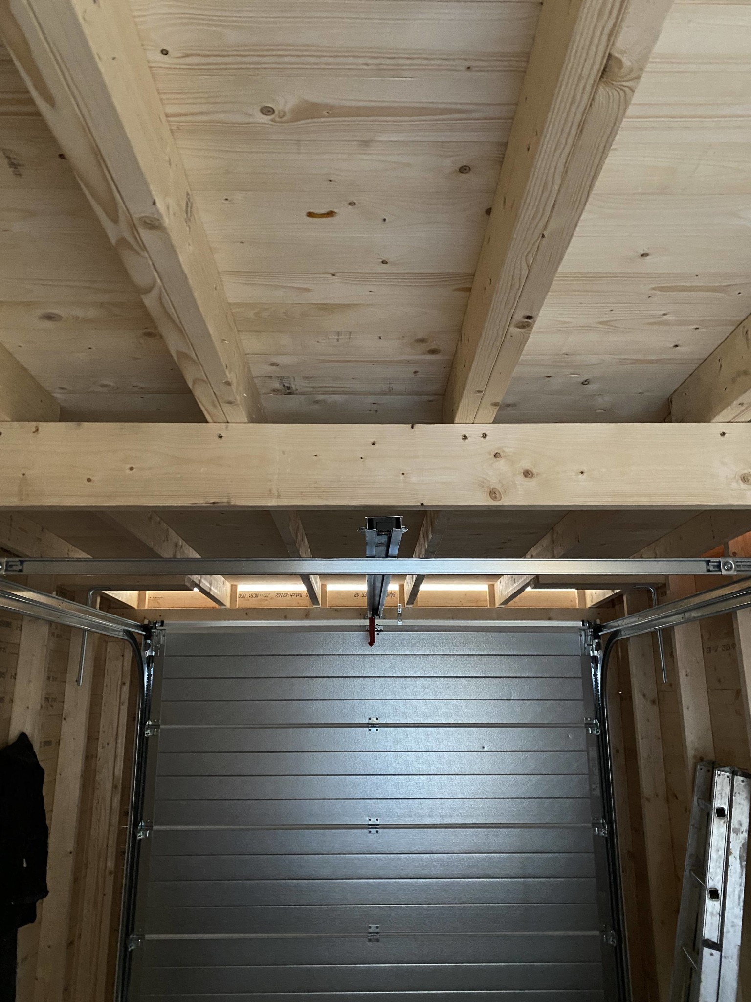 skenan för motorn är för lång och slår I balken som avlastar taket. Det betyder att jag måste såga ur balken ca 10 cm upp och bredden blir som mest 25 cm för att få skenan i lod. Å då är frågan. Kan jag avlasta balken med någon form av stålprofil eller mindre regel som jag breddar balken med för att få tillbaka hållfastheten?