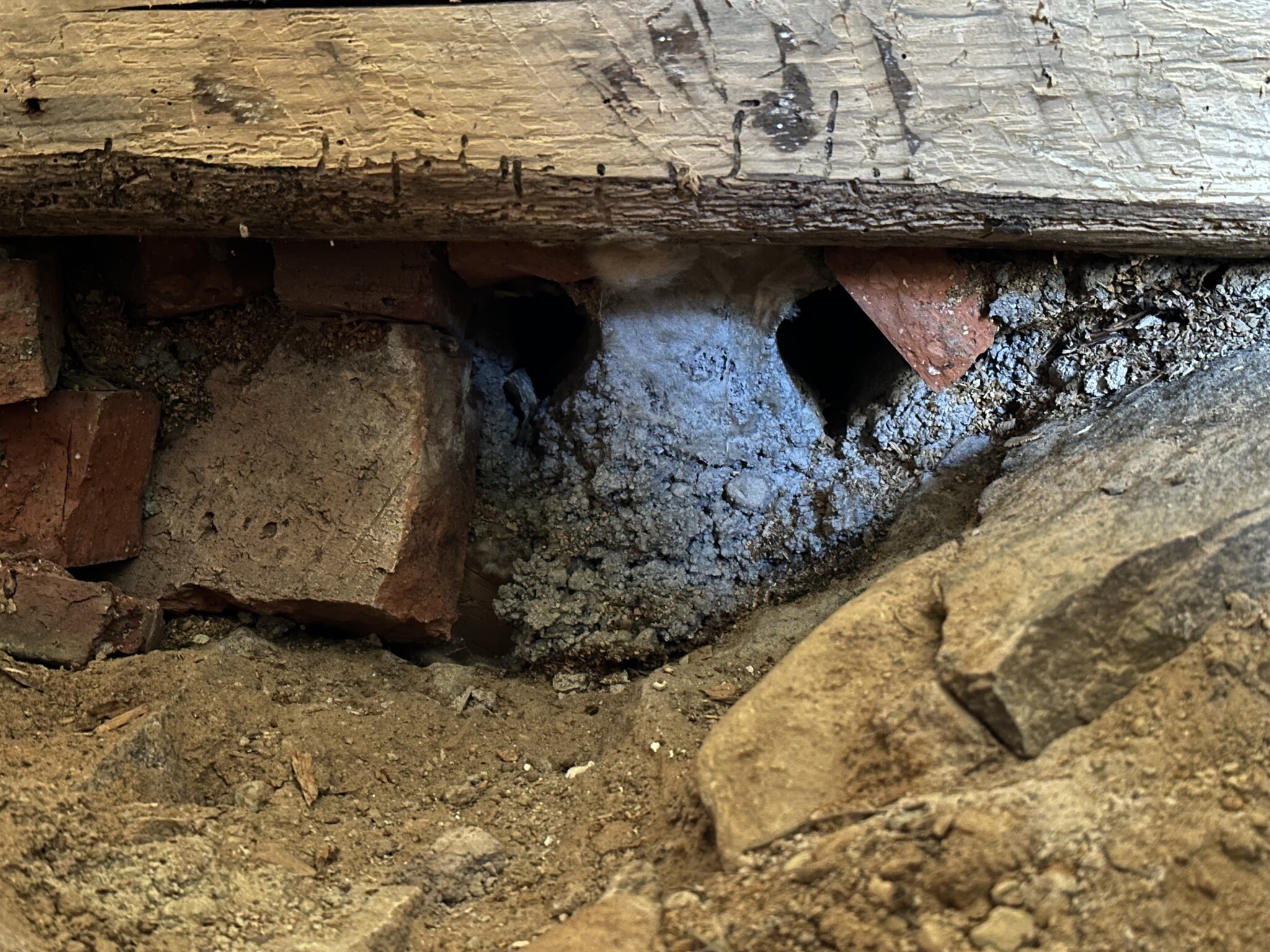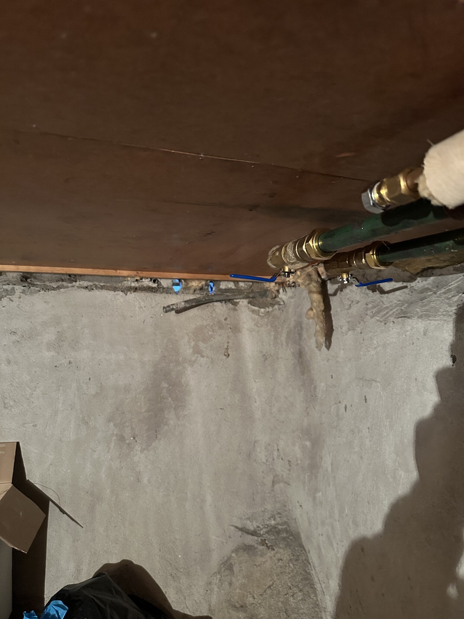 2. Vatten. Radiatorrören har tidigare gått från källartaket in i grunden och sedan upp in i bjälklaget som är något högre. Genom golvbjälken har det tidigare borrats hål för tappvatten diagonalt upp i rummet. Ska nu dra nytt och lutar åt att köra prisol från källare och längs med vägg bakom köket som ska vara där åt vänster. Efter köket blir det synliga hårda kopparrör. Dörren ska sättas igen med en vägg. En regel ska fästas på bjälken för att rikta upp golvet. Kanske inte optimalt att borra nya/fler/större hål i bjälken. Så tänker att jag tar upp ett större hål där radiatorrören gått och drar allt där. Fastnar i hur man gör bäst. Finns det något färdigt att bygga in där som rören kan gå i? För att få tätt mot drag, kyla och möss.
