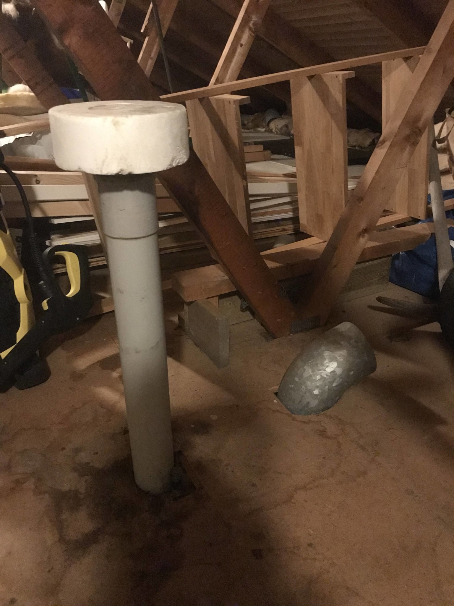 Det finns ett ventilationshål från gästtoaletten (bild 1), som går upp genom ett metallrör upp på kallvinden (bild 2 och 3).