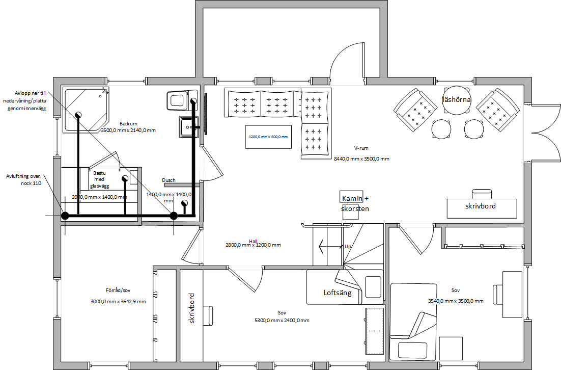 Vi bygger nytt hus och har byggt en våning i taget. Inget fokus lades på övervåningen när huset byggdes men nu börjar jag närma mig en färdig planlösning för övervåningen också och inser att avloppsröret som lades för wc inte ligger riktigt rätt.