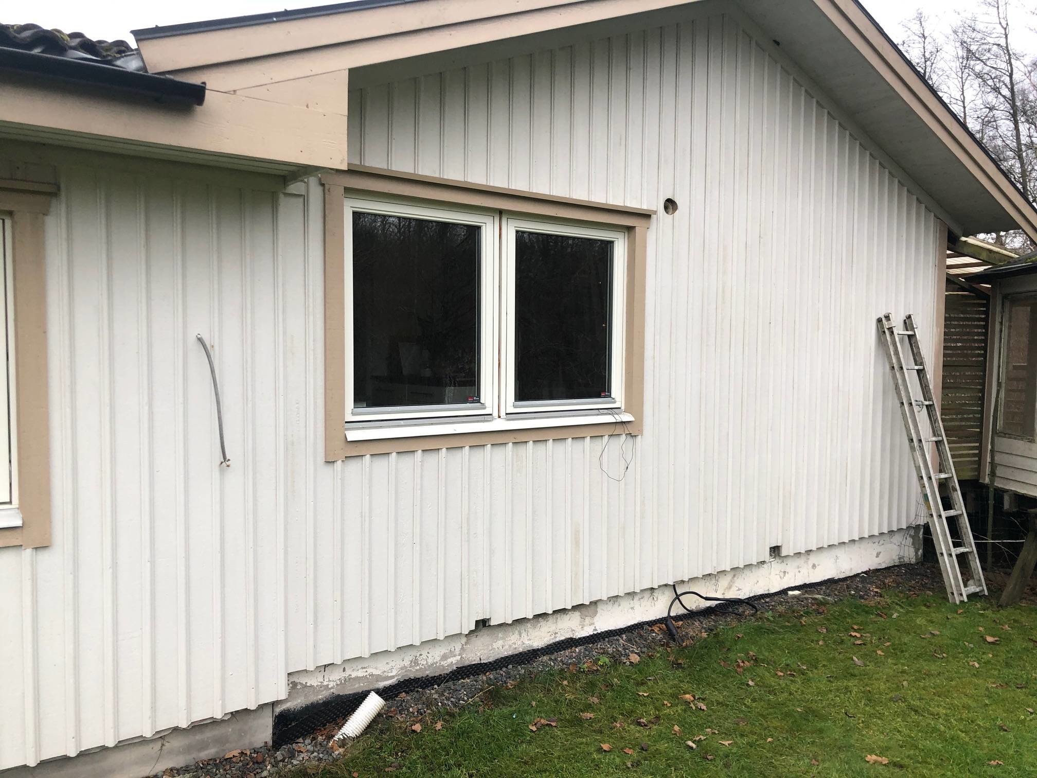 Ska ta och fixa ett avslut på en dräneringsslang som sticker upp ur marken (nere till vänster i bilden).