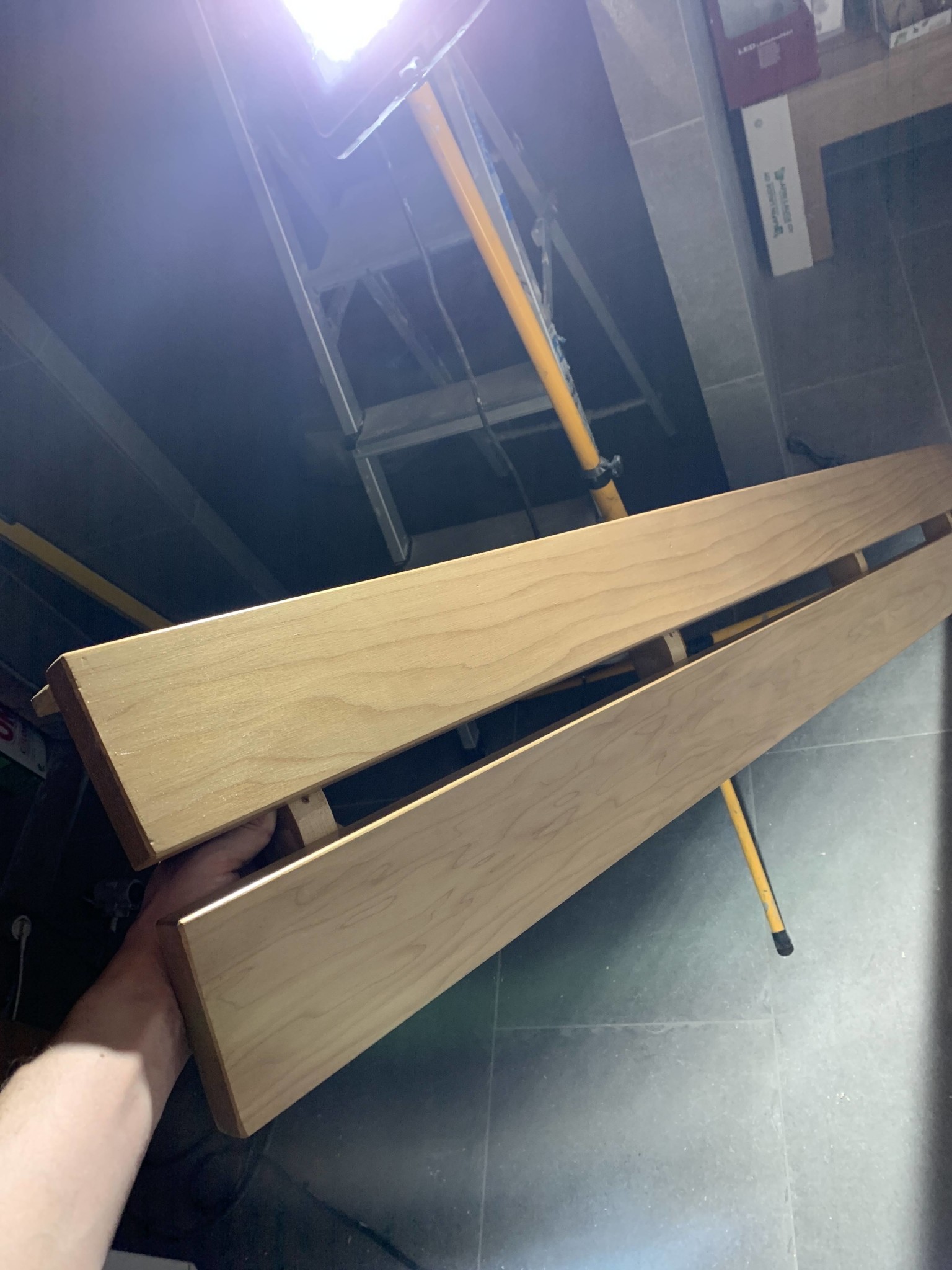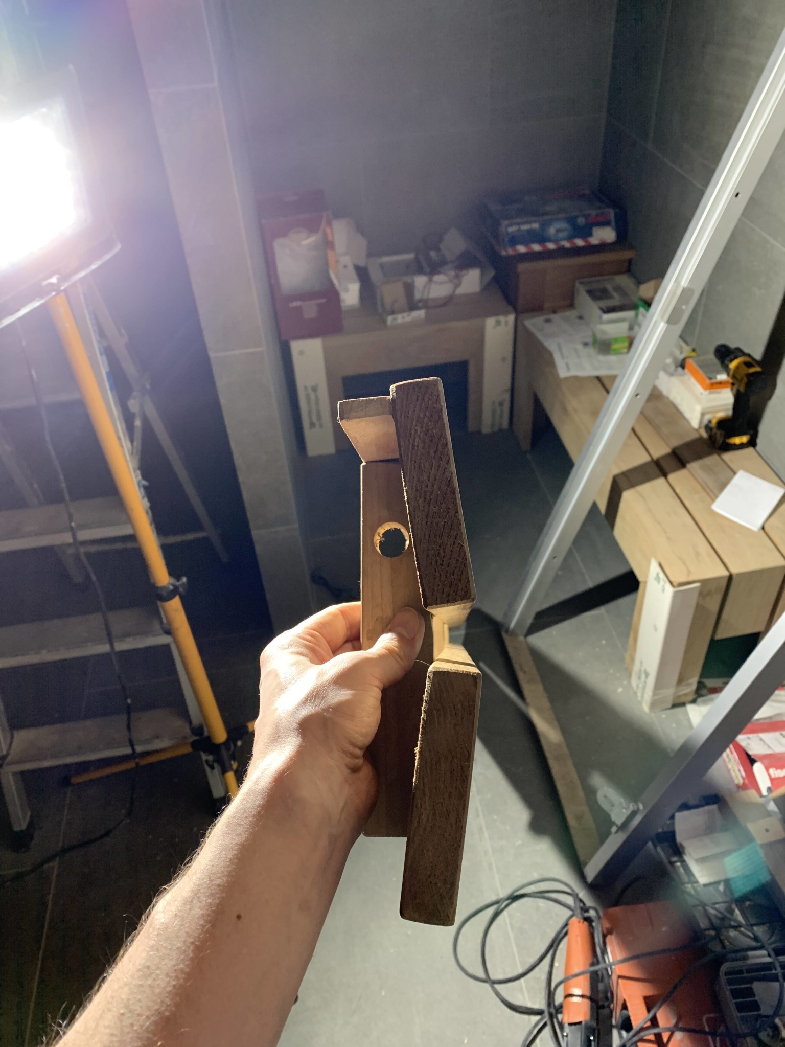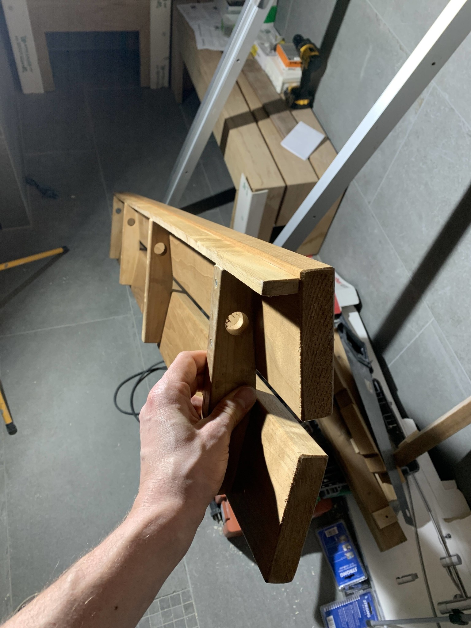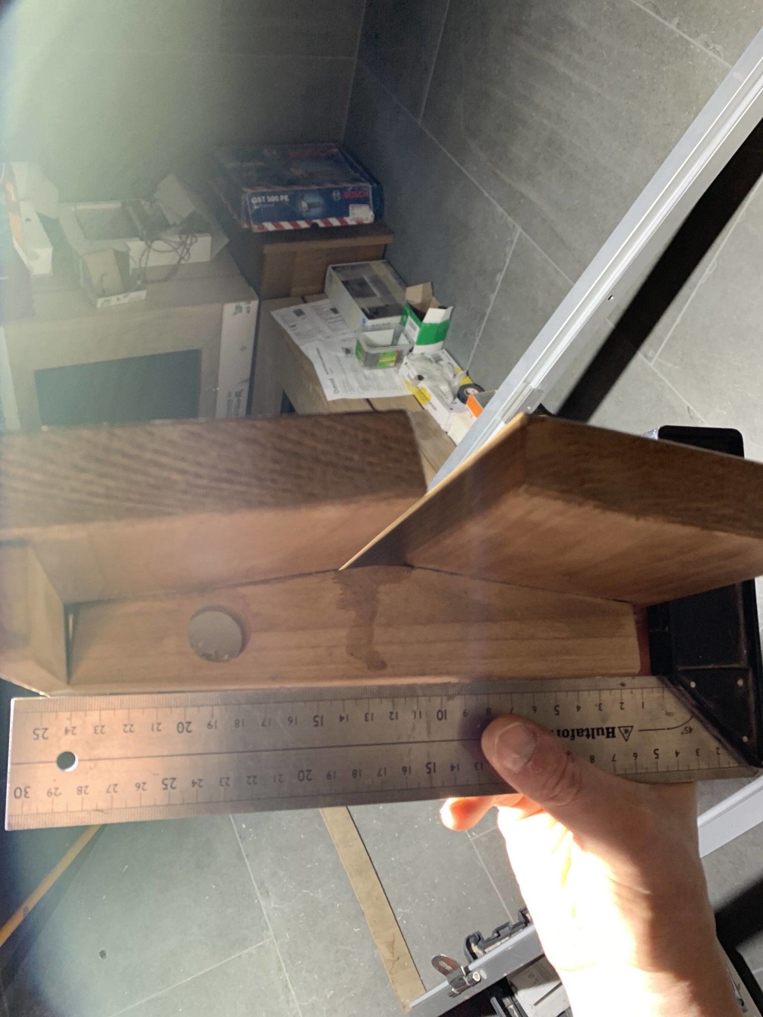 Detta innebär att jag nu antingen får anpassa stöden till där jag vet att en regel finns bakom - inte optimalt, inte minst med tanke på att det är viktigt att LED-spottarna har bestämda och jämna avstånd och stöden får inte störa ljusflödet. Eller så får jag låta min längsgående list (ämnad för att hålla LED-spot:arna) vara av kraftigare planhyvlat virke så att den: