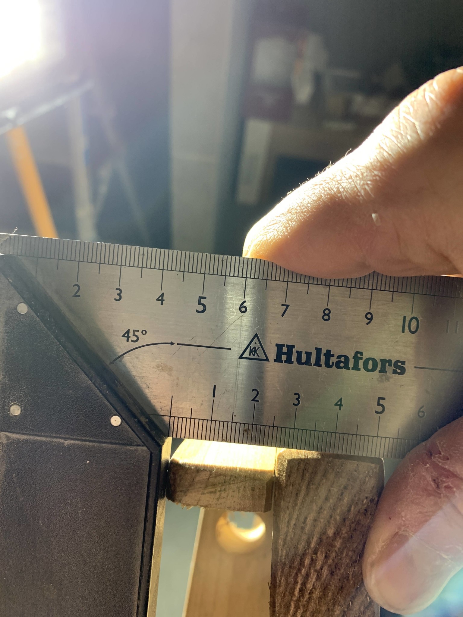9 grader ca blir det. Som sagt, höjden på ryggstöd tänker jag att anpassa slutgiltigt när jag monterar, men pappa har samma bänkar og stöden är monterade så og det funkar bra. (Center av ryggstöd då 33,5cm från lav)