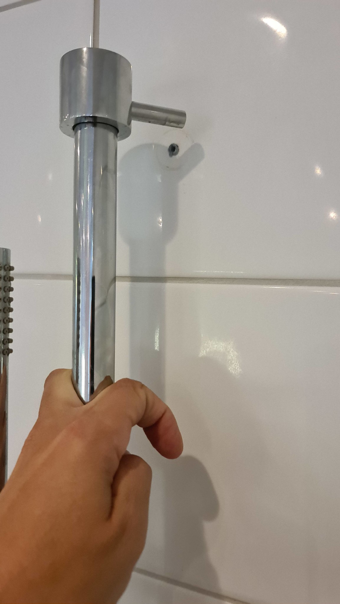 Vad gör man? Måste jag borra ett nytt hål? Måste väl finnas duschar där jag kan justera infästningshöjden?